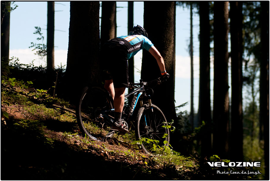 Waar voorgaande fietsen van Giant mij nog wel eens het gevoel gaven, dat ik op een nerveus paard het bos in werd gestuurd, was deze fully heel erg het tegenovergestelde. Dat begint al bij het vrij breed uitgevallen stuur, we hebben het niet nagemeten, maar smaller dan 68 cm was die zeker niet. Ook de stuurpen was korter (op een medium) dan we voorheen op Giant’s aantroffen. Het resultaat is dat je een fiets krijgt waarbij je redelijk ver achterop de fiets zit. Dit maakt de fiets zeer levendig, zonder nerveus aan te gaan voelen. In afdalingen kun je heel makkelijk de achterkant omgooien om de fiets in lastige afdalingen in het juiste spoor te zetten. Veel 29-ers voelen voor mij aan als een fiets die overal overheen walst en die je blind moeilijke afdalingen in kunt sturen in het vertrouwen dat het goed afloopt. De Giant echter combineert door de componentkeuze, de zit en het Maestro veersysteem een fiets die op het vlakke en bergop als een strakke cross country fully aanvoelt, waarna hij ogenschijnlijk transformeert tot een all mountain achtige fully op de eerste afdaling die je inslaat.