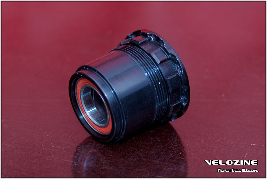 Het meest in het oog springt uiteraard de 10-42t cassette. Onder de tandwielen zelf schuilt een nieuw ontwerp cassettebody (‘XD’ genoemd), die voorzien is van schroefdraad. Deze nieuwe open standaard wordt naast SRAM ook overgenomen door in elk geval DT en Mavic, maar we zagen op de stand van Hope inmiddels ook een versie voorbij komen. Door de gedeeltelijke schroefpassing heeft de cassette geen speling meer op de body (wat het bekende invreten voorkomt), valt de belasting van de lagers gunstiger uit, en maakt de sluitring plaats voor een 10t tandwieltje.