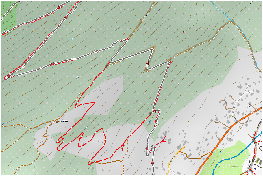 Off road in de bergen is het cruciaal om de juiste manier van routeren (snelst – kortst – minste stijging) te selecteren en zelf ook goed na te blijven denken. Iets wat in de bergen sowieso niet verkeerd is, maar dat terzijde. Om een voorbeeld te geven: zie afbeelding!