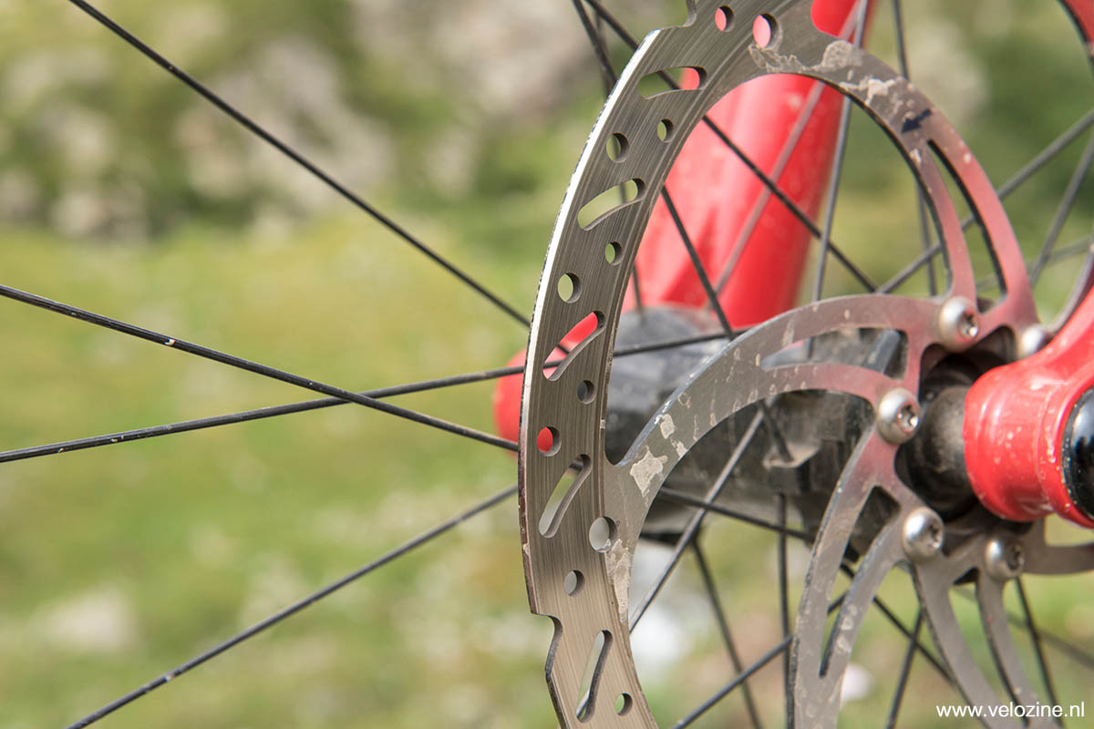 Ik heb de Trickstuff Dächle-remschijven en de Power- en Standard-remblokken inmiddels twee jaar in gebruik. Dat klinkt lang, maar omdat ze op mijn alpenfiets zitten valt dat natuurlijk wel mee. Of niet, het is maar hoe je het bekijkt. Ik breng beroepshalve namelijk relatief veel tijd in de bergen door en een kleine tien- tot vijftienduizend negatieve hoogtemeters hebben de remmen daarom wel voor hun kiezen gekregen, schat ik zo. En mijn ervaring daarbij is zéér positief. Voordat ik dat motiveer eerst nog dit: ik heb eigenlijk niet de juiste testprocedure gevolgd. In plaats van het hele spul – remschijven en remblokken – in één keer te vervangen, had ik deze onderdelen eigenlijk los van elkaar moeten testen. Alleen dan kan je immers uitvinden of het nieuwe onderdeel beter, gelijk of minder goed functioneert dan het origineel.