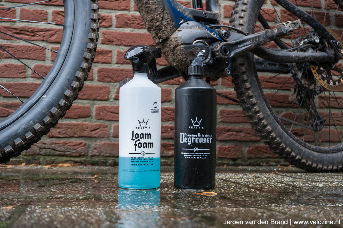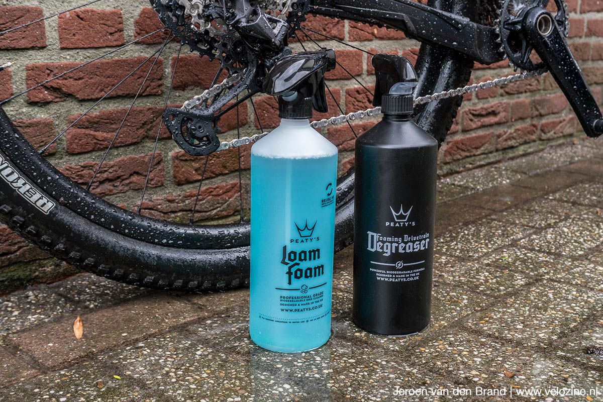 Zoals Loam Foam van Peaty’s. ‘A shiny clean steed with minimal effort’; aan ons de schone taak dát eens te beproeven. En voor de aandrijflijn gebruikten we Foaming Drivetrain Degreaser.