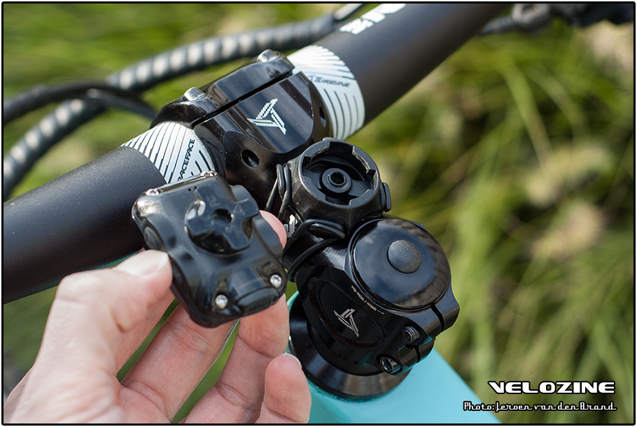 Mijn eerste indruk toen ik de verpakking openmaakte was de gedachte “Ah, dát bedoelen ze dus met het woord Micro…”. Dit ding is klein! Zo klein zelfs dat je hem met gemak kwijt kan raken als je er geen vast plek voor vindt. De houder zit met een tweetal rubberen o-ringen om het stuur of de stuurpen gemonteerd en vervolgens klik je de Micro C er met een 45 graden draaibeweging op. Dit bevestigingssysteem lijkt veel op dat van de Garmin Edge modellen, alleen zit hij duidelijk een stuk strakker vast. Ondanks het compacte oppervlak van het scherm is de houder vrij hoog, wat dat “Micro” gevoel toch iet wat teniet doet. Het compacte formaat maakt gelukkig wel dat hij goed te monteren op korte stuurpennen die tegenwoordig steeds meer de norm zijn en waar grote computers vaak niet goed op te monteren zijn.