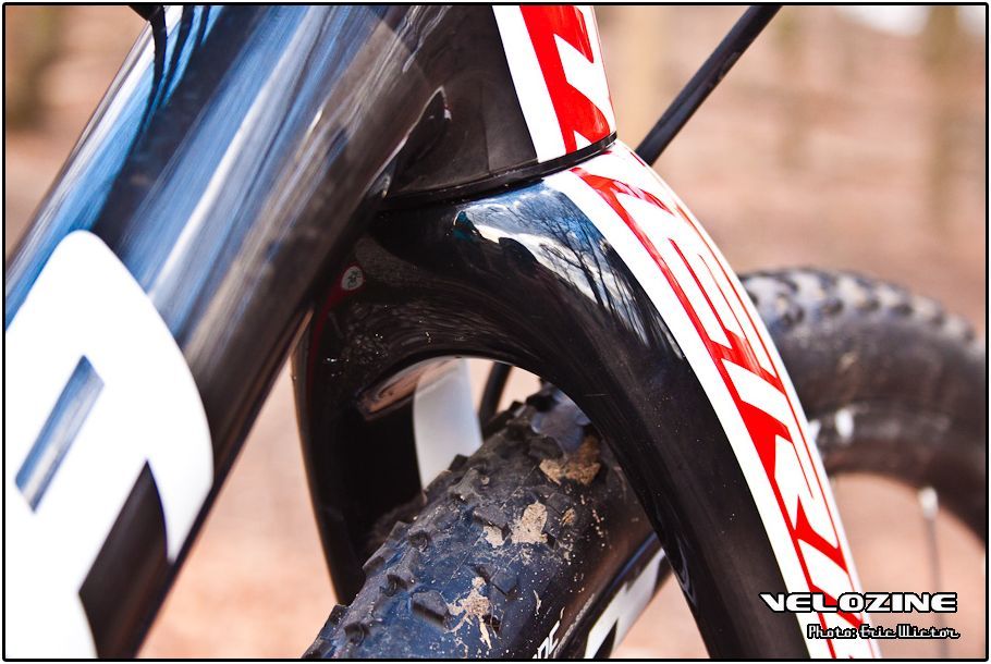 De wielen zijn Fulcrum Red Power 29. Deze zijn vrij basic, degelijk en stijf, maar niet licht en en ook niet tubeless voorbereid voor wie dat wil. Voor wie alleen maar toert of als training is dit een prima keus. De serieuze wedstrijdrijder koopt waarschijnlijk toch een lichte set voor tubes (of de progressieven tubeless) en zal daarmee het al nette gewicht significant verder verminderen. De banden zijn Maxxis Raze, die zeer geschikt zijn voor droge omstandigheden, maar snel aan de limiet komen in de nattigheid. Op de foto’s is de fiets afgebeeld met Clement PDX, een noodzakelijkheid voor weer zoals in december 2012, zoals die andere Jeroen hier ook vaststelt.