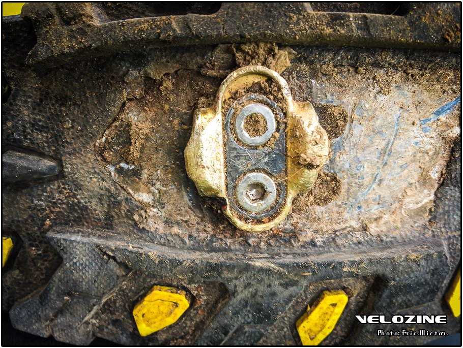 Crank Brothers heeft, net als Shimano SPD, zo’n ±2,5 mm aan zijdelingse aftelvrijheid. Hierdoor kan je de Q-factor nog enigszins naar wens bijstellen en vastleggen. Bij Time heb je die vrijheid ook… maar bestaat die in de vorm van speling op je pedaal. Juist: Waar Crank Brothers alleen rotatie toelaat, heeft Time rotatie en zijdelings speling! Goed, ik ben er aan gewend en omdat ik erg toe-out rij, duw ik onbewust mijn voeten zo ver mogelijk naar buiten. De oplossing bij de Mallet E’s heet, ondanks de extra lange LS pedaalas: zo ver mogelijk de schoenplaatjes zijdelings verschuiven.