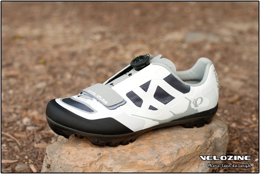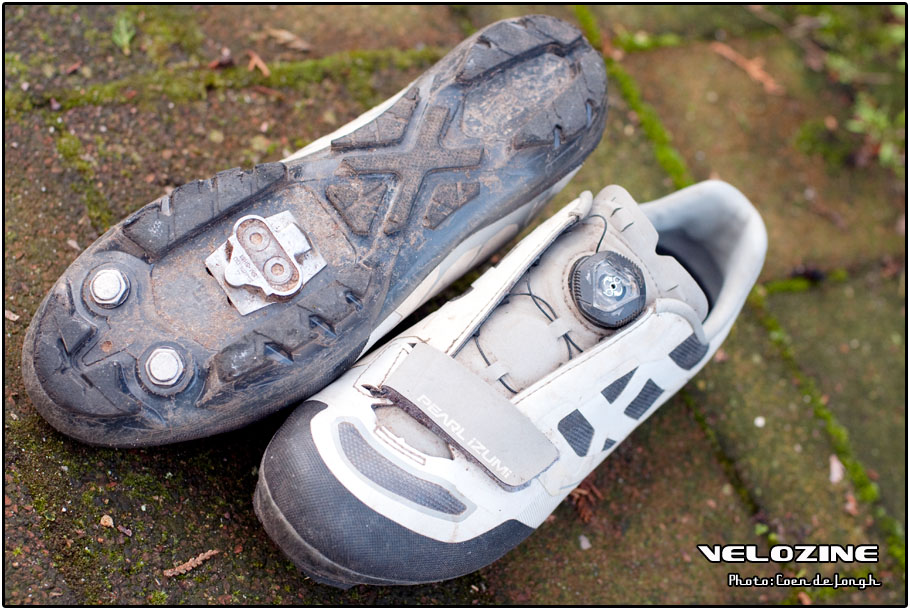Ik heb me laten vertellen dat die ‘Brian’ op zoek was naar een schoen met een goede krachtoverbrenging van voet naar pedaal, maar dat de zool ook buigzaam moest zijn, zodat je er ook fatsoenlijk mee kunt lopen. X-Project, heeft Pearl Izumi dat vervolgens genoemd en dat komt erop neer dat met name het middendeel van de zool flexibel is, zodat de schoenen niet als stugge klompen lopen.
