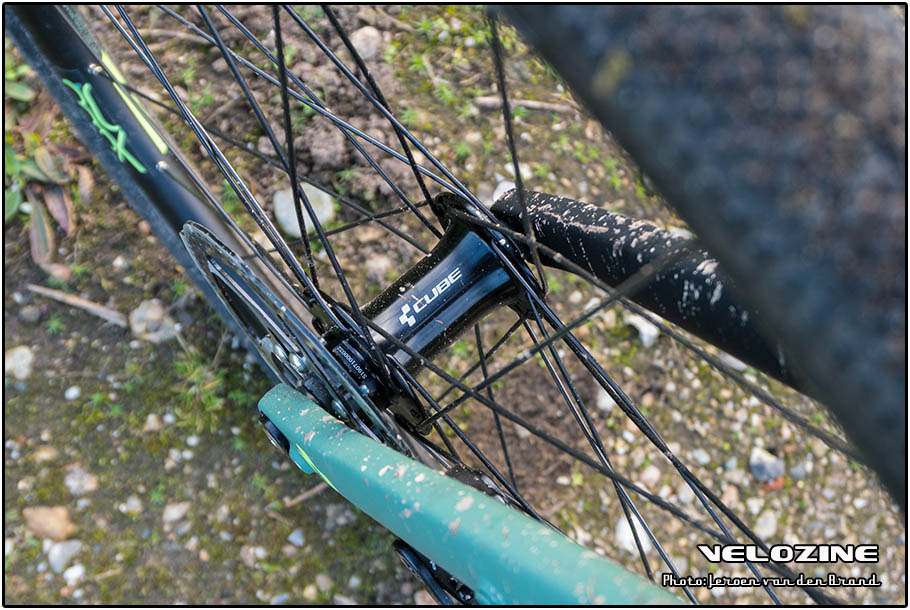 Op de voorvork na kom je geen carbon tegen op deze fiets. De stuurpen, het stuur en de zadelpen zijn allemaal van aluminium en uit Cube’s eigen stal. En dat geldt ook voor het zadel en de stuurtape. Op subtiele accentkleuren na, valt het weinig op – en dat is een compliment want het doet wat het moet doen. De andere plek waar Cube bespaard heeft is bij de wielen. De Cube RA 0.8 CX wielset bestaat uit Alex velgen en eigen-label naven. Maar rechtstreeks uit de doos liepen die niet echt lekker. Ze draaien op losse kogellagers, en pas na het toevoegen van vet én een betere afstelling liepen ze beter.