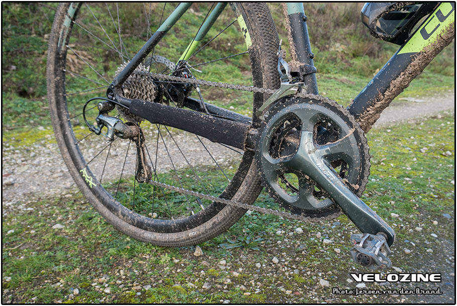 Cube mikt overduidelijk op een relatieve brede doelgroep met de Nuroad Pro. De crankset heeft namelijk een 50t kettingblad als grootste… Pomp de banden dus harder op, of monteer een setje racefietsbanden en snelheid maken op verharde ondergrond gaat vrij moeiteloos. Voor offroad klimmen lijkt de 34t vooraan als kleinste in combinatie met een 34t als grootste op de cassette toereikend, maar wanneer de klim langer wordt dan zou een tandje lichter niet out of place zijn.