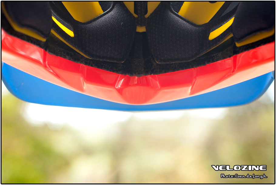 Tot slot en aan het design van deze specifieke helm gerelateerd: hinderlijke schitteringen boven in je gezichtsveld, doordat de oranje rand bij zonnig weer haast als een spiegel de omgeving weerkaatst. Ik zou te allen tijde een variant kiezen waarbij die rand in een matte (zwart) kleur is uitgevoerd.