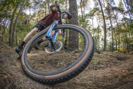 Het gemak en controle waarmee je verhard rijdt, zet zich voort op de offroad routes. Het valt me op dat je in bochten veel snelheid houdt en de banden solide blijven aanvoelen. Het sleutelwoord hierbij is vooral voorspelbaarheid. Waar de banden met het LiteSkin karkas nog al eens ‘ineens om klapten’, geeft het SnakeSkin-karkas duidelijk meer support. De lage noppen hebben natuurlijk een beperkte mate van grip. Echt agressief insturen betekent dat het voorwiel onherroepelijk gaat glijden. Als je iets minder de hooligan uithangt, is er toch met veel vertrouwen op hoge snelheid te rijden en kom je niet snel grip tekort. De achterband gedraagt zich eigenlijk op dezelfde manier. Er is genoeg grip en als je blijft zitten en mooi ‘rond’ trapt kom je ook op een steile droge wortelklim makkelijk naar boven. Ga je staan en stampen op de pedalen, dan verliezen de banden ook hier hun grip. De gebroeders hebben een behoorlijk voorspelbaar gedrag dat uitnodigt tot een gecontroleerde, ‘flowy’ rijstijl.