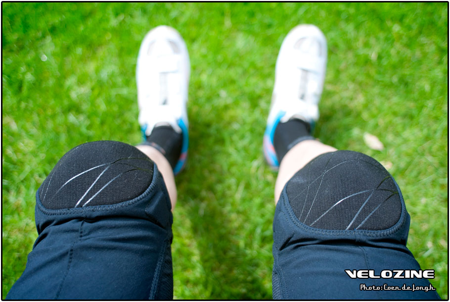 Wij hebben als testsample maat medium, die passen mij met redelijk dunne benen. Een volgende keer zou ik ze een maat kleiner nemen, omdat Lycra van mij wel behoorlijk strak mag zitten – het knelt immers niet snel. Daarnaast viel ook op dat de bescherming echt maar minimaal over de knie gaat. Met name aan de onderkant zou dit van mij nog wel een paar centimeter door mogen lopen. Aan de bovenkant daarentegen omvat het beschermende deel de knie heel netjes.