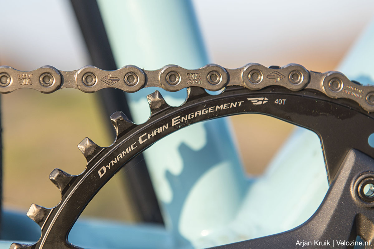 - Profiel kettingblad: dik-dun-vertanding (Shimano Dynamic Chain Engagement)