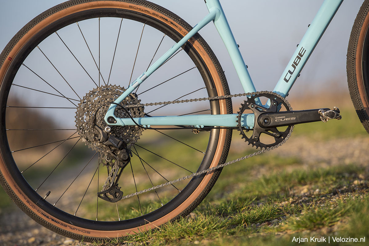 Natuurlijk: wie een gravelbike à la de Cube Nuroad HPA met 11-speed Cues koopt om er lekker mee door Nederland te toeren, heeft natuurlijk genoeg aan 50/40 als lichtste verzet. Maar uitstapjes naar Zuid-Limburg en verder kunnen voor de minder getrainde gravelfieters helaas al snel een stevige uitdaging zijn. Collega Jeroen stipte het fenomeen al eerder aan: gravelbikes worden structureel overgeared en de Cube Nuroad HPA met 11-speed Cues is daarop geen uitzondering.