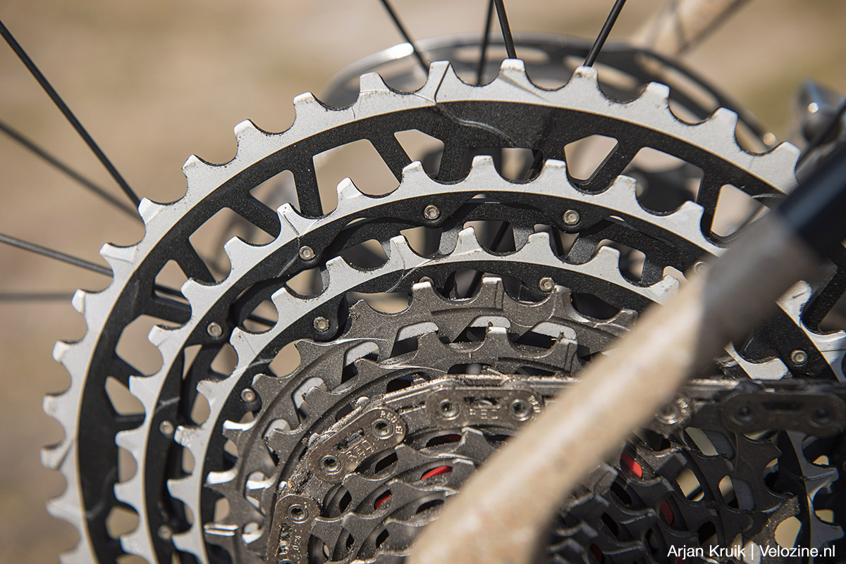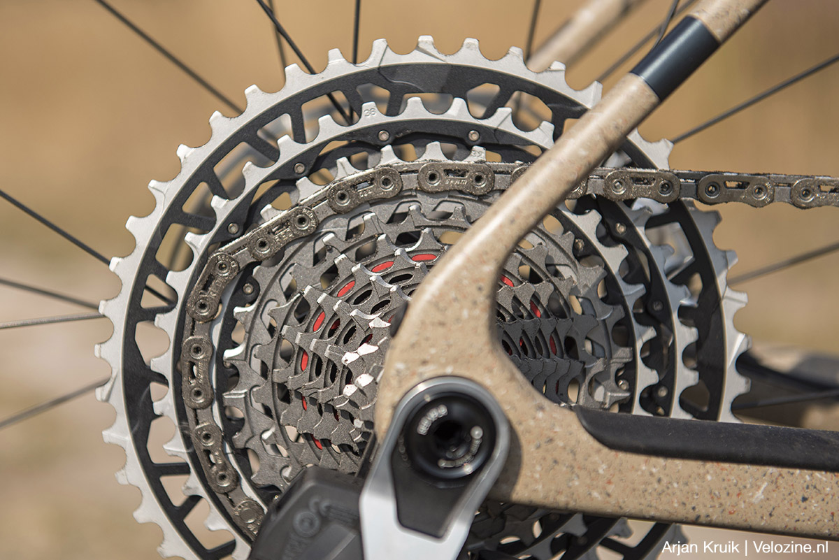 Alleen als je de cassette écht het vuur aan de schenen legt – denk aan een onmogelijk steil wortelpad dat je helemaal niet zag aankomen – kan deze zich net als een reguliere cassette wel eens verslikken en gaat het verplaatsen van de ketting met een hoop kabaal gepaard. Of erger nog: val je stil en moet je afstappen. Op zulke momenten biedt de X-Sync-vertanding van een Transmission-systeem meer zekerheid. Maar goed, dat zijn omstandigheden die de meeste gravelbikers sowieso zullen vermijden. Niet voor niets heet deze tak van fietsen gravelbiken en niét mountainbiken. Horses for courses.