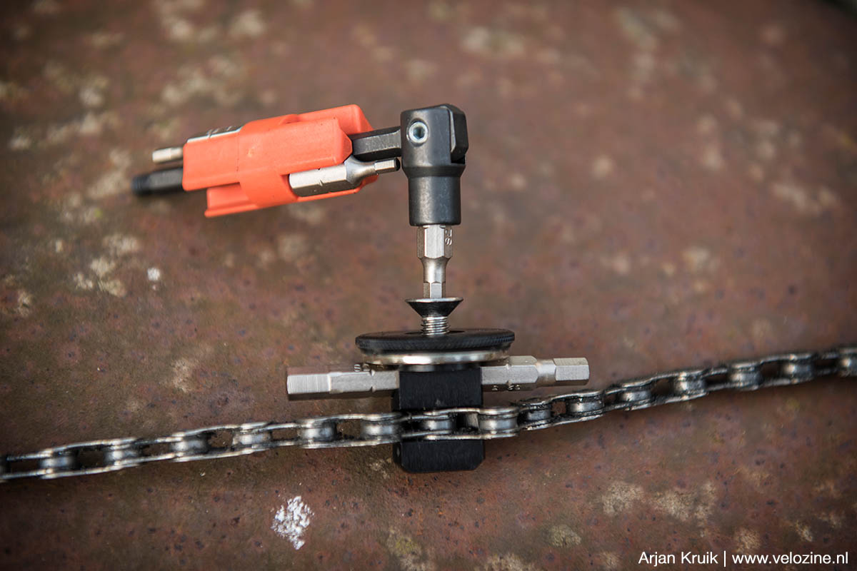 Het Italiaanse gereedschapje is erg praktisch in het gebruik. Niet alleen door de kantelbare bithouder, waardoor je goed kracht kunt zetten, maar ook vanwege de goede passing van de bitjes zelf, waardoor je niet snel de kop van de boutjes op je bike stukdraait. Nadeel is wel dat die kop relatief dik is, waardoor je niet altijd overal even goed bij kunt. Dat is overigens een euvel waarmee ook veel andere multi-tools te kampen hebben en de reden waarom een normale set inbussleutels in je werkplaats noodzakelijk blijft. De All In Multitool V3 is ook uitgerust met een kettingpons voor 11- en 12-speed kettingen. Die ziet er wat rudimentair uit, maar in de praktijk werkt ook deze functie gewoon goed.
