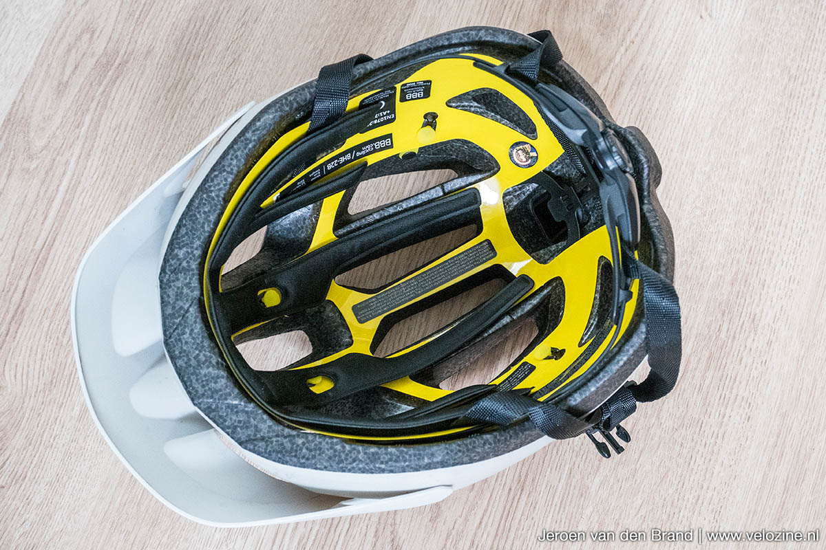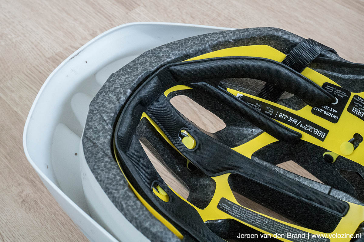Qua afwerking heeft BBB Cycling het met de Dune MIPS 2.0 helm prima voor elkaar. Het oogt allemaal erg netjes. De overgang tussen de EPS binnenzijde en de kunststof buitenschaal is overal strak en nergens steken fliebertjes of randen uit. Het EPS is aan de onderzijde echter niet beschermd met kunststof van de buitenschaal. Dat is eerder regel dan uitzondering in dit prijssegment. Je doet er dan ook slim aan de helm voorzichtig weg te leggen, omdat onbeschermde EPS nu eenmaal sneller beschadigd. Maar eigenlijk moet je met elke helm natuurlijk voorzichtig omgaan om zijn werking te kunnen garanderen wanneer het er toe doet.