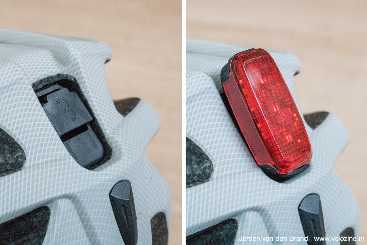 Niet alleen de MIPS-liner geeft extra bescherming bij deze Dune MIPS 2.0 helm. Via een verwijderbare rubberen inzet in het ventilatiegat in het midden achterop de helm, kun je een achterlicht monteren. Is de gele liner passieve veiligheid; de verlichting is actieve veiligheid. Immers, gezien worden draagt bij aan het voorkomen van onveilige situaties. BBB’s Spot (BLS-147) gesp je simpelweg aan het rubber en schakel je aan met de (ook met handschoenen aan) goed vindbare knop bovenop. Je laadt de Spot op via een mini-USB en hij geeft je in de knipperstand tot 16 uur brandtijd. Slim, handig én veilig!