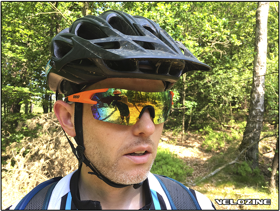 De bril moet je wel goed passen. Doet ‘ie dat niet, dan heb je bij een breder hoofd snel meer druk op de pootjes en bij een smaller hoofd ligt ‘ie simpelweg te los. In mijn geval is het ‘spot on’. De druk op de pootjes is voldoende en de rubbers rond de neus houden de bril stabiel zelfs tijdens het stuiteren op remknippen of snelle wortelpassages. Gecombineerd met het ontbreken van een montuur in het blikveld lijkt de licht dragende bril dus al snel te verdwijnen.