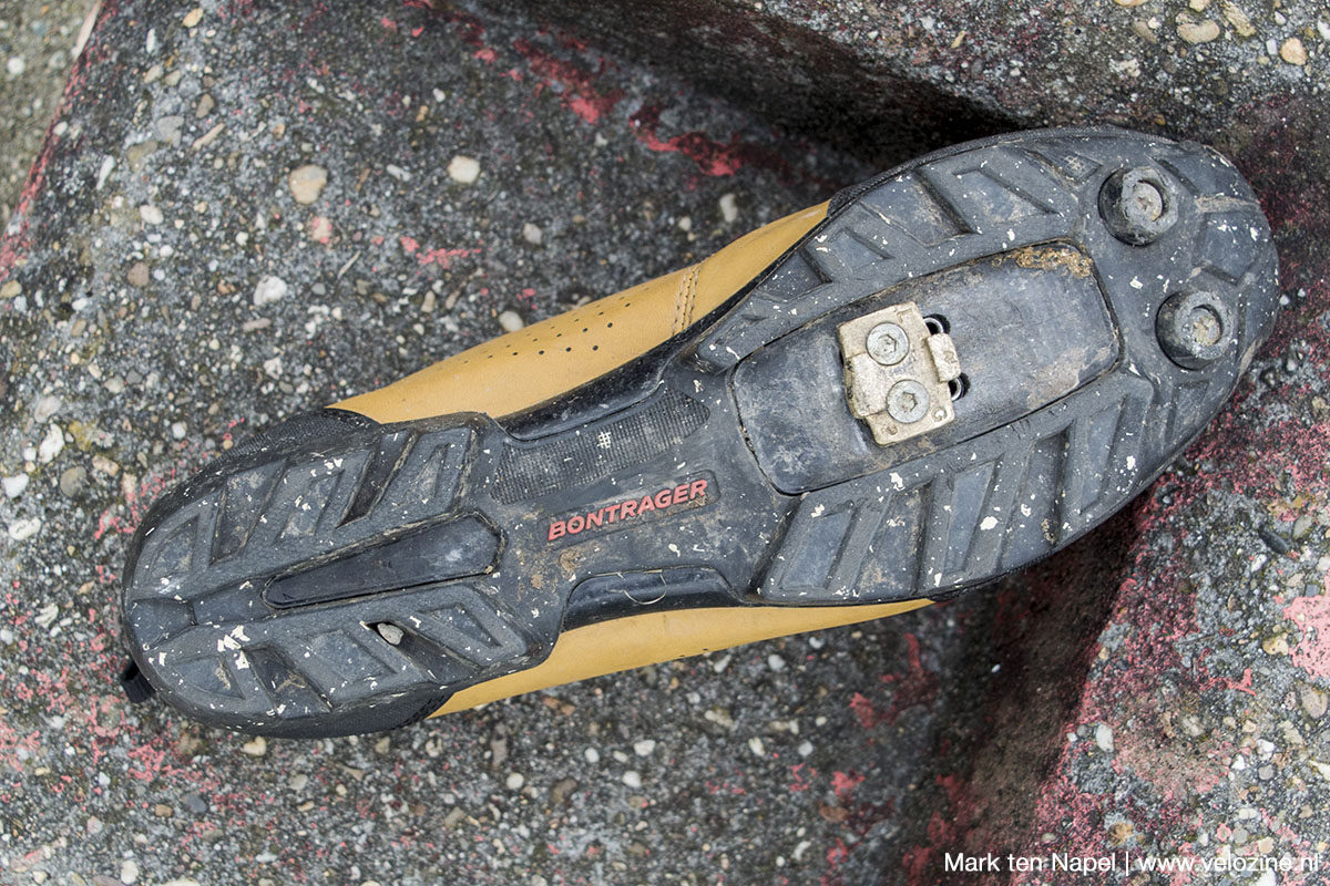 Met de Lintaman-inlegzolen passen de Bontrager GR2’s me als gegoten. Dat blijkt onder meer uit het gegeven dat ik de veters niet snoeihard hoef aan te trekken. Ook het relatief stugge kunstlederen bovenwerk en de dun gepolsterde hielcup sluiten daardoor goed aan, waardoor de GR2’s erg comfortabel dragen. En dat niet alleen op de korte ritten naar en van mijn werk, maar ook op de langste ritten die ik tot dusver ooit op een tweewieler heb gemaakt. Dankzij de gravelbike fiets ik meer dan ooit. En ik durf dan ook te stellen dat deze GR2’s al meer kilometers gezien hebben in die paar maanden dat ik er mee op pad ben, dan welke van mijn mountainbikeschoenen dan ook in de voorbije vijf jaar.