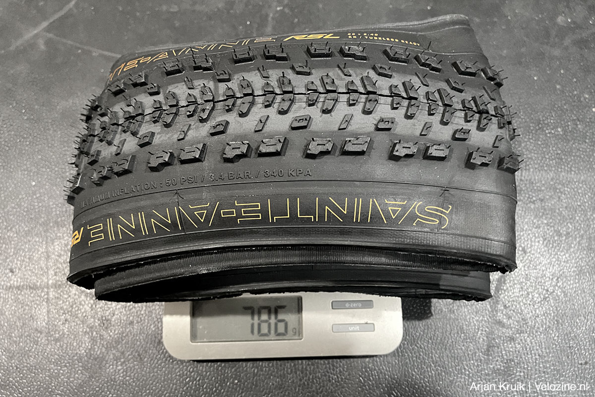 Om te beginnen is er natuurlijk het lage gewicht. Ik vind 786 gram voor een 2.4 inch band een mooie waarde. Een waarde die bovendien in lijn ligt met die van de Duitse concurrentie. En dan is er, ook niet onbelangrijk, de lage rolweerstand. Nee, die heb ik niet gemeten. Maar op m’n vaste routes ben ik met de Sainte-Anne’s op geen enkele manier langzamer dan met Schwalbe’s Ray en Ralph die ik voorheen reed. Vind je het irritant over dat ik die Duitse xc-banden er telkens bij haal? Snap ik. Maar die Duitse rubbers zijn nou eenmaal mijn referentie. En, niet onbelangrijk, ze zijn eveneens de referentie van heel veel andere crosscountry-rijders.