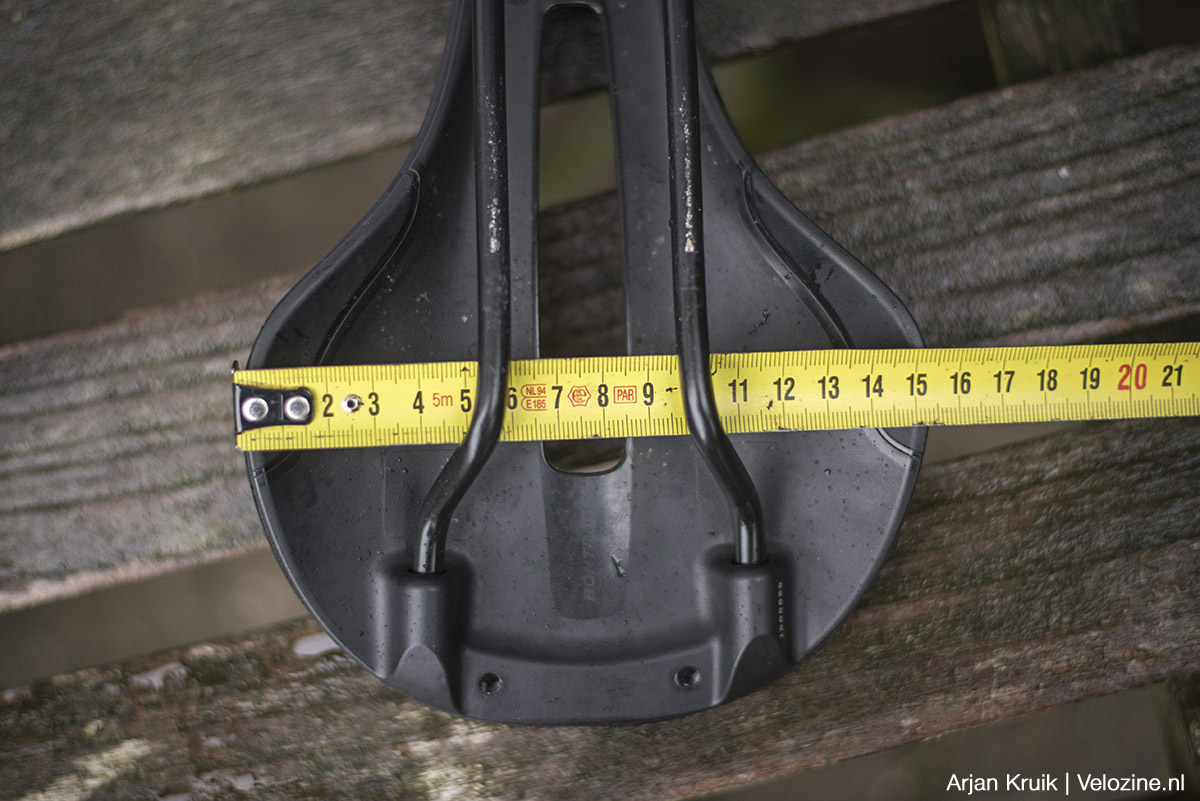 ‘Mijn’ Verse Short Trail is de enige uitzondering binnen deze reeks, Bontrager presenteert dit zadel nadrukkelijk voor trail-gebruik. Echter, zoals de naam aangeeft hoort het bij de korte Verse-modellen, wat in dit geval gelijk staat aan 250 millimeter, tegenover de 270 millimeter van de lange Verse-modellen. De Verse Short Trail is er in 145 en 155 millimeter breedte. Omdat mijn gravelbikezadels vanwege de wat diepere zit over het algemeen een centimeter smaller zijn dan mijn trailbikezadels ben ik voor de 155 millimeter uitvoering van de Verse Short Trail gegaan. Immer, de lange uitvoering van de Bontrager Verse, die ik momenteel op mijn gravelbike gebruikt, is 245 millimeter breed.