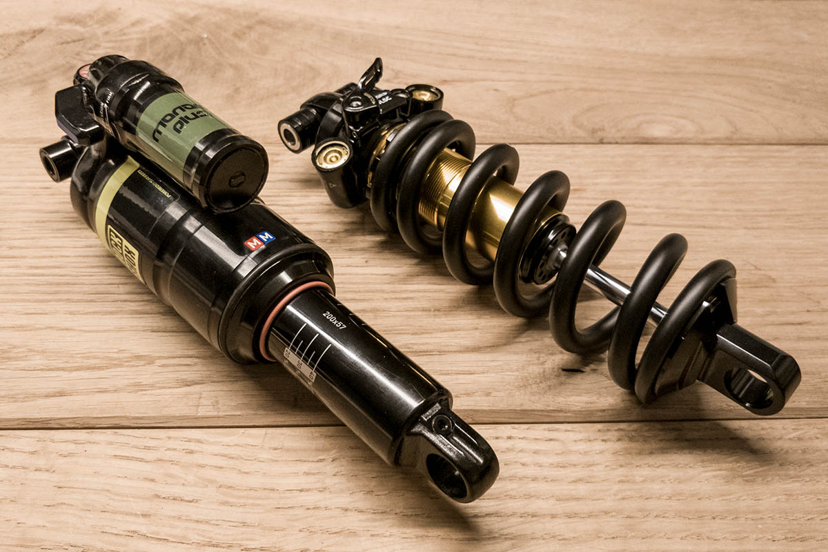Want hoewel luchtgeveerde vorken en dempers de markt domineren omwille van hun instelbaarheid, zijn er ook genoeg redenen om een veringselement met een schroefveer te willen. Ten eerste: een demper met schroefveer mist de meerder grote seals van de luchtkamer. Dit scheelt een hoop wrijving! Een schroefveer spreekt daarom in het begin van de veerweg beduidend soepeler aan. Ten tweede: een demper met schroefveer heeft veel minder last van opwarming. Tijdens een lange, ruwe afdaling geeft een luchtdemper veel meer warmte door aan dempingsolie én de lucht vanbinnen. Het resultaat: een stijvere (lucht)veer én minder demping! Tot slot: een schroefveer heeft rondom het sagpunt doorgaans een hogere stijfheid dan een luchtveer. Je fiets voelt hierdoor — ondanks dat ‘ie beter aanspreekt — alsnog stabieler aan. Alles bij elkaar vertaalt dit zich naar een systeem dat méér tractie en controle geeft.