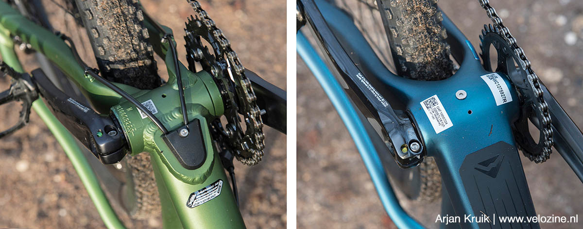 Dan het aluminium frame van de Big-Nine 700. Dat geeft de schokken van diezelfde wortels gevoelsmatig iets directer door aan het zitvlak door, maar lijkt die impacts wél iets beter te dempen. Waar het carbon van de Big-Nine 3000 meer als een veer zonder demping werkt en de energie van het inveren nagenoeg ongedempt teruggeeft, gaat er bij de beweging (flex) van het aluminium frame wél energie verloren. Oftewel: het is een veer die dus minder kracht teruggeeft, dan dat je er instopt. Demping dus.