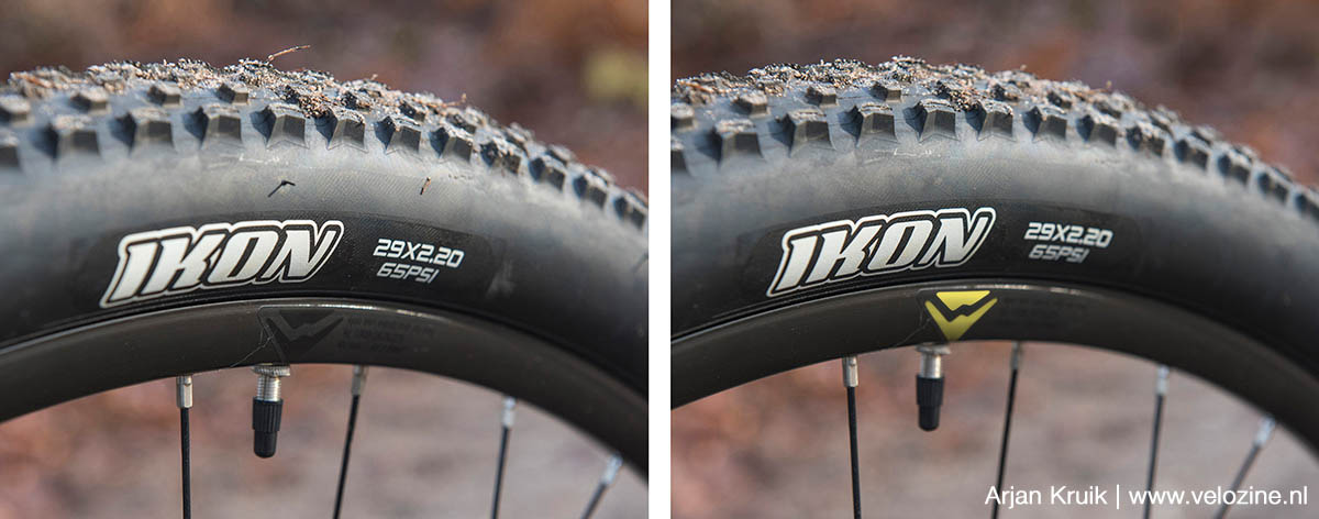 Om dat uit te vinden, heb ik de achterbanden gevuld met 1,8 bar, de voorbanden met 1,6 bar en de voorvork met 7,5 bar. En vervolgens heb ik beide bikes om en om vele tientallen keren over steeds hetzelfde worteltapijt gestuurd.