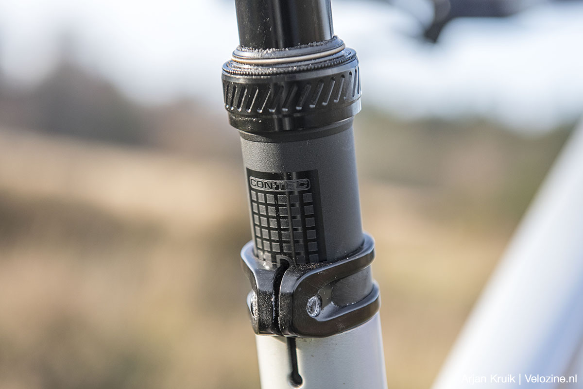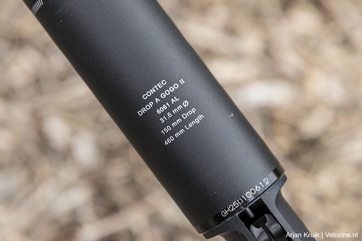 De Drop-a-gogo II is de nieuwste dropper van Contec. Dit Duitse accessoiremerk levert de Drop-a-gogo II in diameters van 27,2 tot 34,9 millimeter en met een verstelbereik van 60 tot maar liefst 230 millimeter. In alle gevallen is de prijs 250 euro. Op de website van Contec vind je een uitgebreid overzicht van alle uitvoeringen en hun lengtes. Ik heb met de 31,6/150-millimeter-uitvoering gereden.
