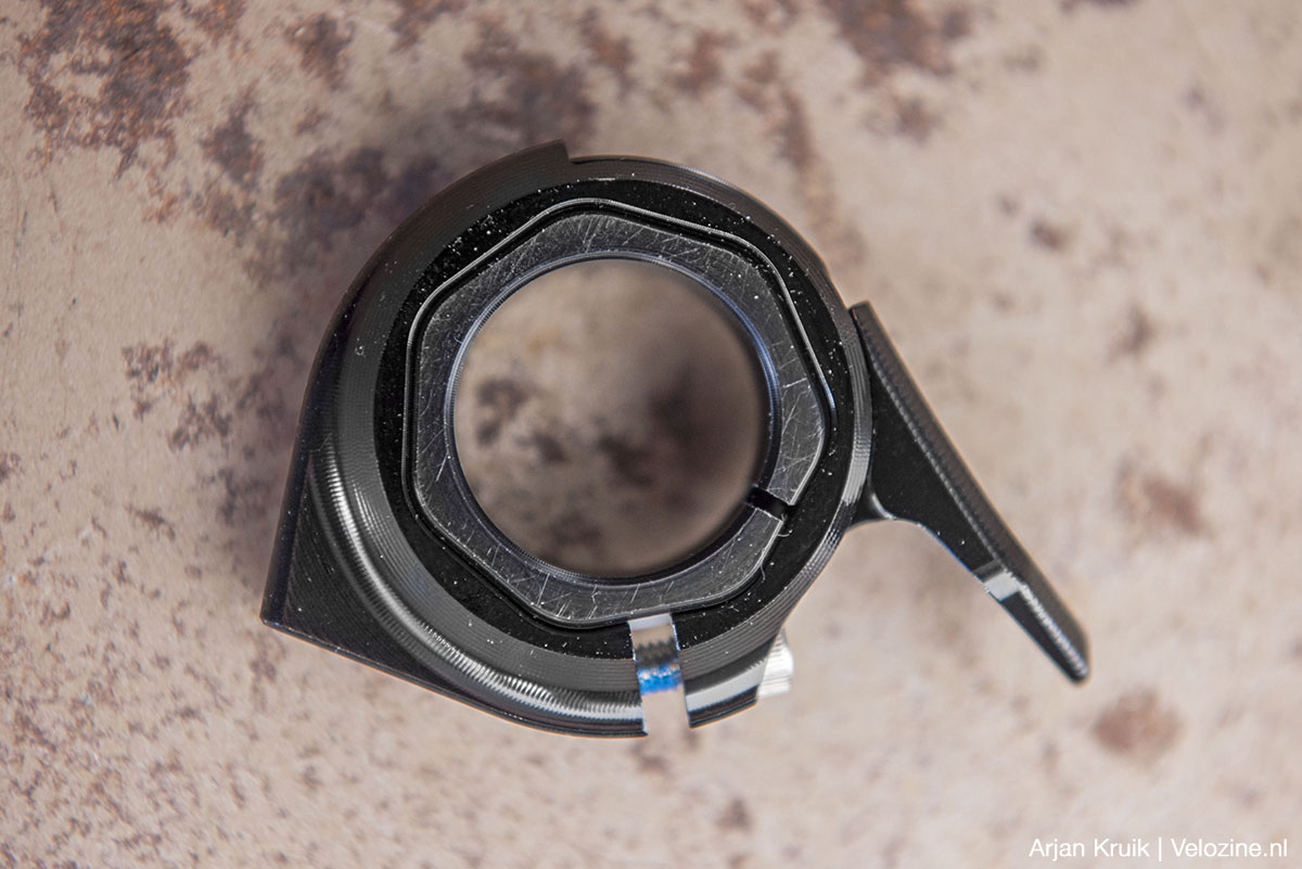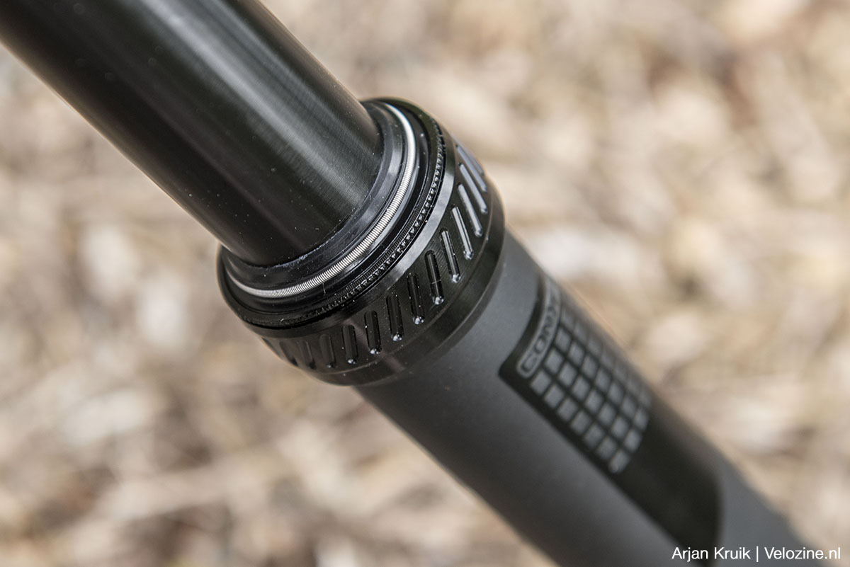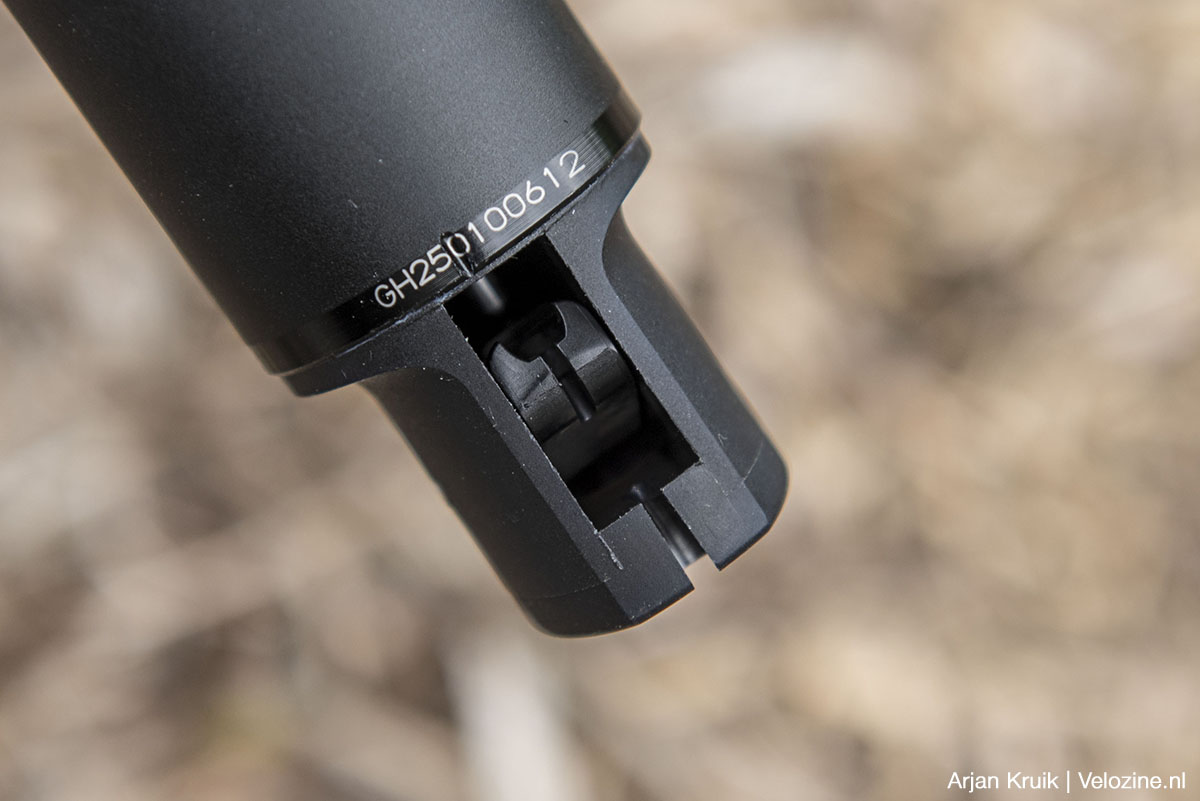 Wel ondergemiddeld is de snelheid waarmee het zadel omhoog komt. Dat zou van mij gerust wat vlotter mogen, met name op trails met afwisselend korte klimmetjes en dito afdalingen. Hier speelt overigens eveneens mee dat de “kloenk” aan het eind van de slag nogal bescheiden is, zodat het soms gissen is of het zadel al dan niet helemaal in z’n hoogste stand staat. Over stand gesproken: een schaalverdeling op de buitenkant van de pen zou ook fijn zijn.