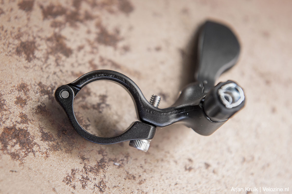 Nog even over het hendeltje op het stuur: de combinatie met de Motive-remmen van Sram is qua positionering niet optimaal. Om voldoende afstand te realiseren, zou ik de remote het liefst rechts van de remklemband plaatsen, maar dan zit het oliereservoir van de rem in de weg. Ik heb de afstandsbediening daarom links van de remklemband gemonteerd. Hierdoor het hendeltje naar mijn smaak iets te dicht bij m’n duim.