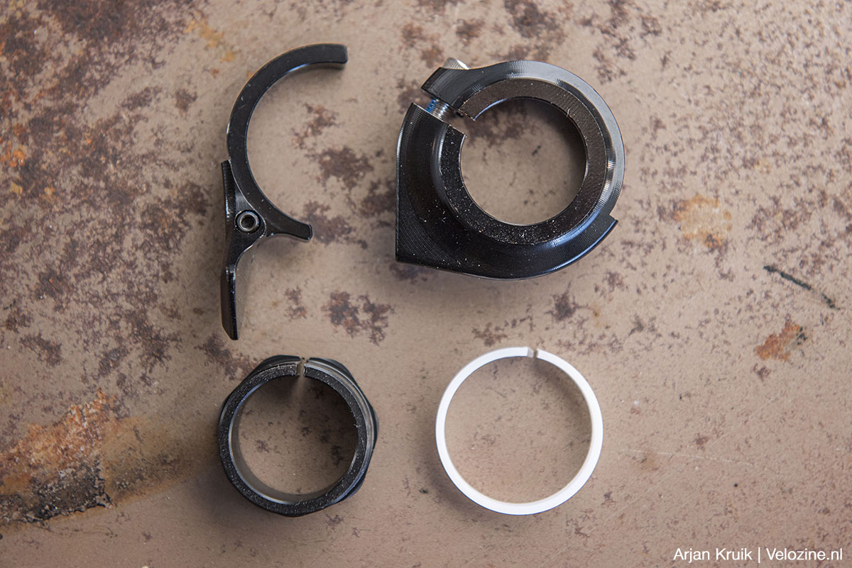 A propos versteller: de Drop-a-gogo II wordt niet geleverd met één, maar met twéé verstellers; een horizontale en een verticale. Beide zien er hoogwaardig en doordacht uit. Daarnaast omvat de leveringsomvang natuurlijk een kabel. Helaas niet zo’n extra soepele zoals die van Jagwire die ik een tijdje terug probeerde (test hier). Beetje jammer, want zo’n speciaal, extra soepel kabeltje resulteert in een significant lichter gevoel aan de hendel. Daarnaast is een aantal vulringen meegeleverd waarmee je de hoeveelheid drop desgewenst kunt verminderen. Van deze optie heb ik geen gebruik gemaakt.