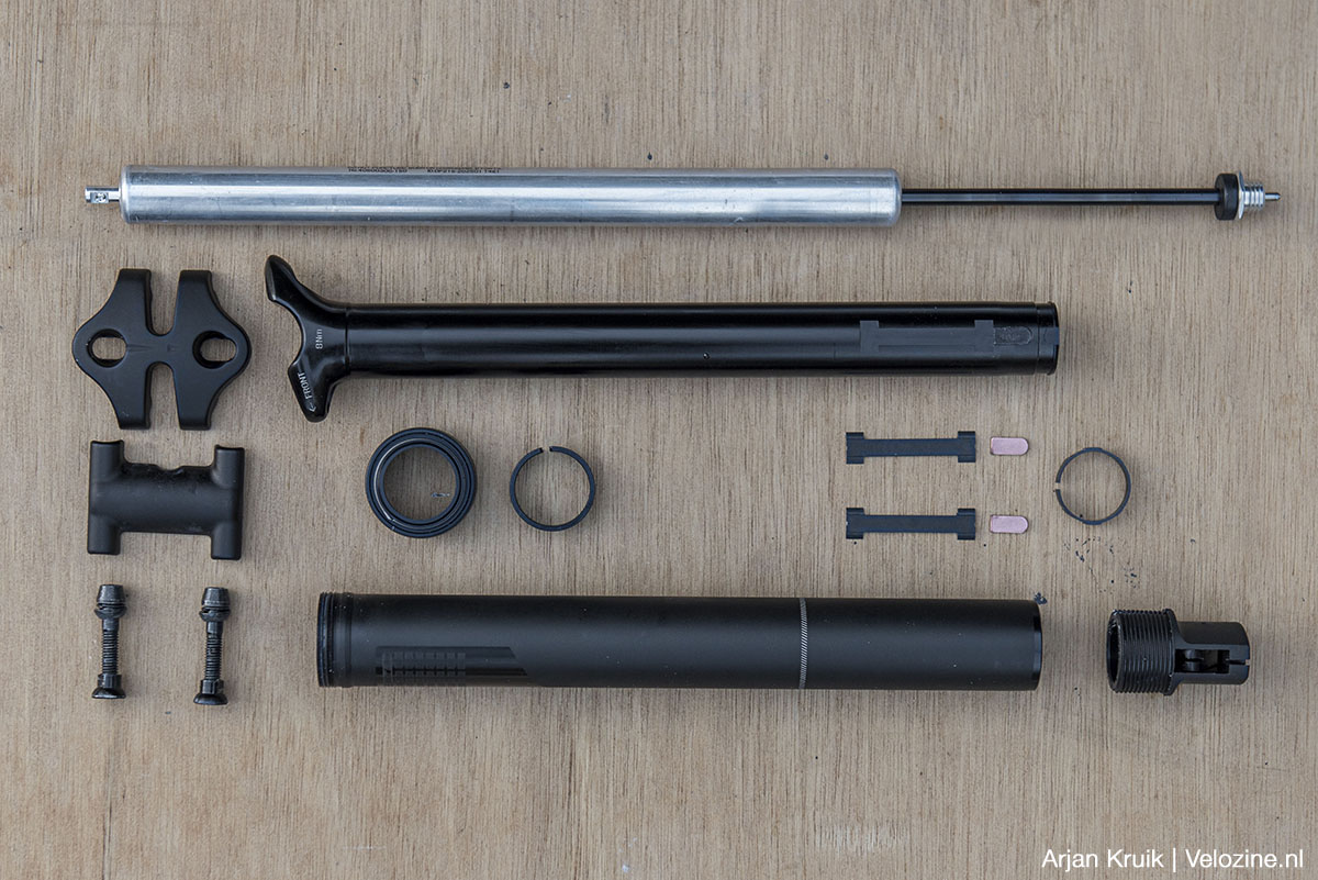 Aan wie zelf (een deel) van het onderhoud van z’n Drop-a-gogo II wil doen, kan Contec voor tien euro een zogenaamde service-kit E leveren. Deze kit bestaat uit een nieuwe stofkering, een nieuw glijlager en twee geleidestrips. Ook de hydraulische cartridge, de binnenpen, de buitenpen, de zadelklem en het actuatiemechanisme zijn los leverbaar. Fijn, want dat maakt het mogelijk de Drop-a-gogo II zelfs bij zeer intensief gebruik langdurig in bedrijf te houden.