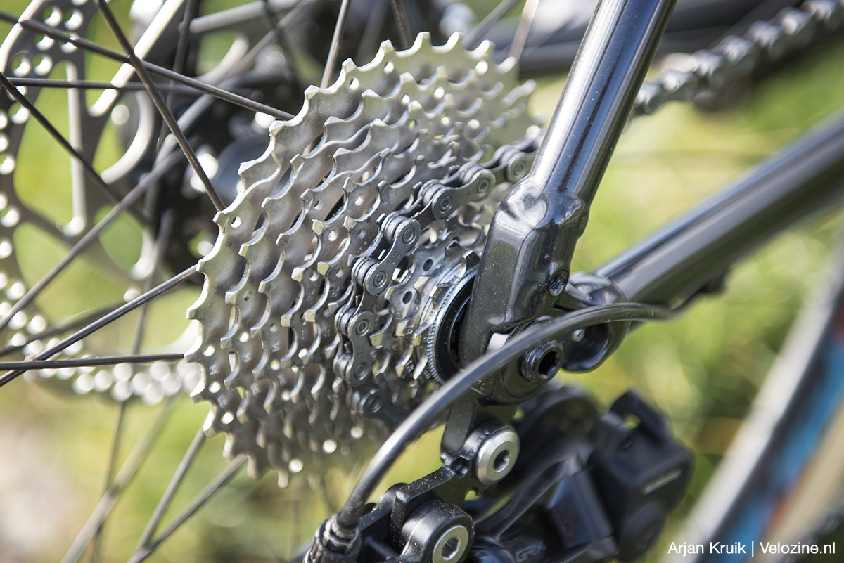 Eén ding zit mij, als relatief matig getrainde hobbyfietser, wel dwars en dat is de cassette die Conway op de vrijloop heeft geschroefd. In lange en steile beklimmingen is voor mij een lichtste verzet van 30 voor op 32 achter aan de krappe kant. Misschien ervaar ik dat zo omdat ik aan de veel lichtere verzetten van mijn mountainbike gewend ben. Maar hoe je het ook bekijkt; een 11/34-tands of liever nog een 11/36-tands cassette zou, zeker tijdens lange tochten, de angel uit steile offroad-beklimmingen halen.