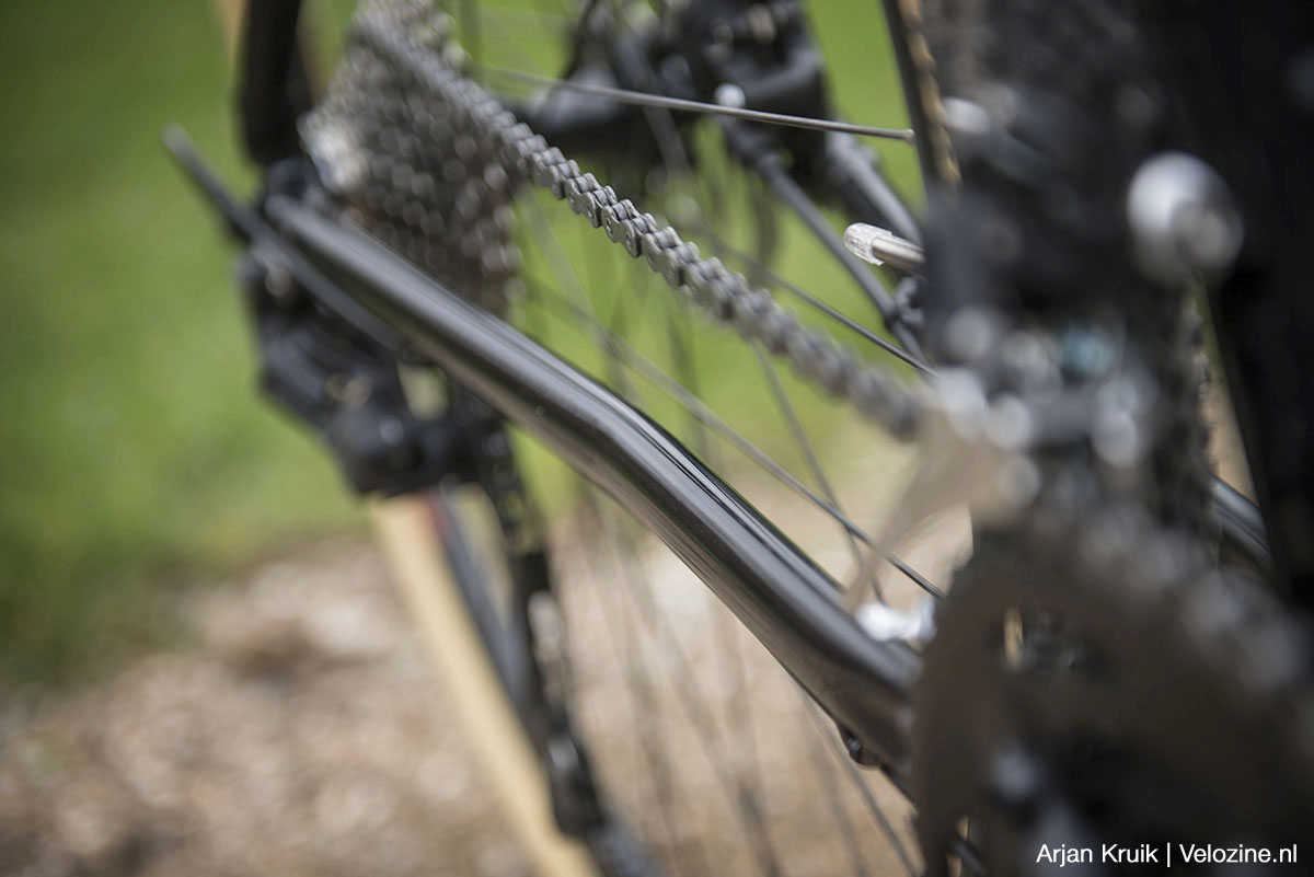 “Eén ding zit mij, als relatief matig getrainde hobbyfietser, wel dwars en dat is de cassette die Conway op de vrijloop heeft geschroefd. In lange en steile beklimmingen is voor mij een lichtste verzet van 30-op-32 aan de krappe kant.”
