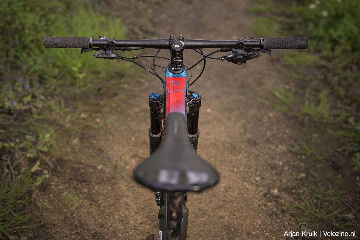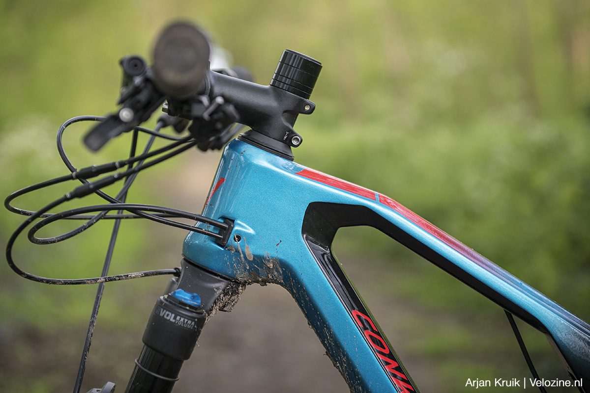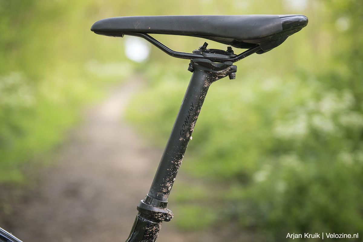 Was de Conway RLC FS mijn eigen bike, dan monteerde ik een stuurpen van maximaal 70 millimeter lang, een stuur met iets meer buiging naar achteren en een zadelpen met rechte kop. Los van het verkorten van de zitpositie, is die laatste sowieso aanbevelenswaardig. Om in steile beklimmingen m’n houding te optimaliseren, heb ik het zadel uiteindelijk zo ver als mogelijk naar voren geschoven. Dát en de met 445 millimeter bovengemiddeld lange liggende achtervork maken dat de Conway RLC FS als een malle klimt. Diezelfde lange achterkant maakt het wel lastiger het voorwiel op te trekken als je een obstakel wilt nemen. Maar goed, ik loop nu vooruit op m’n rij-impressie hieronder.