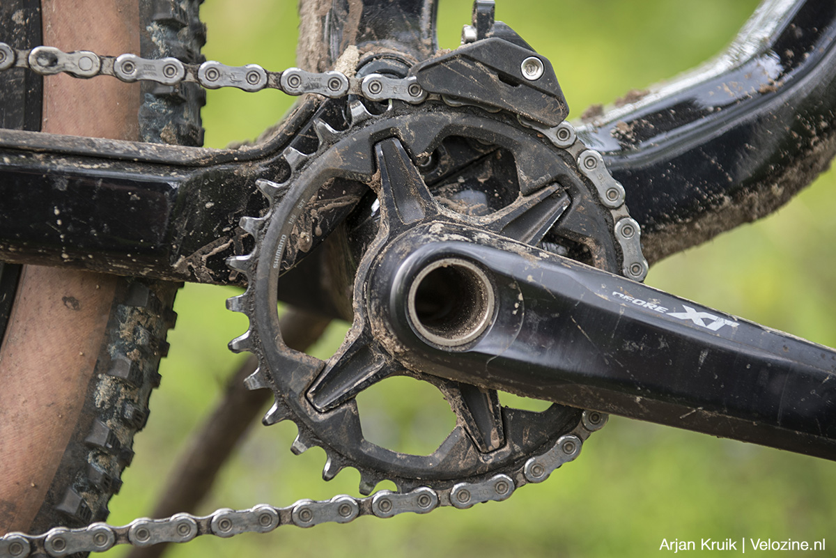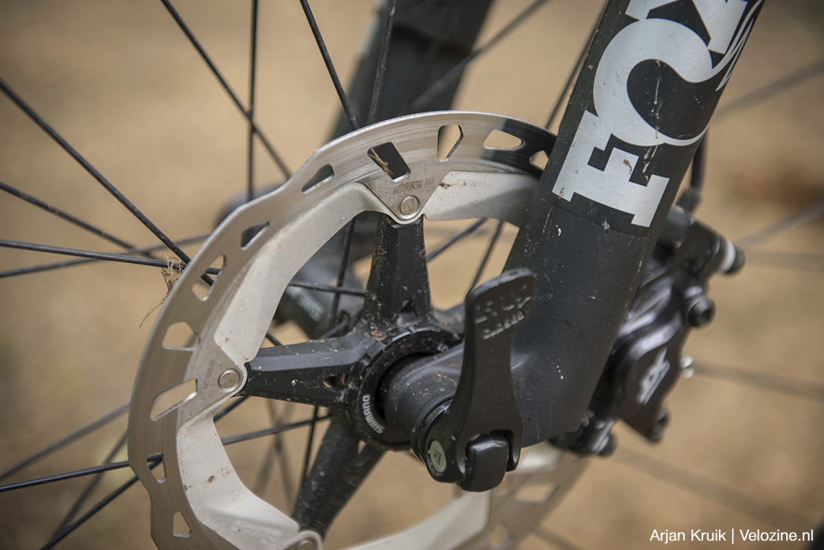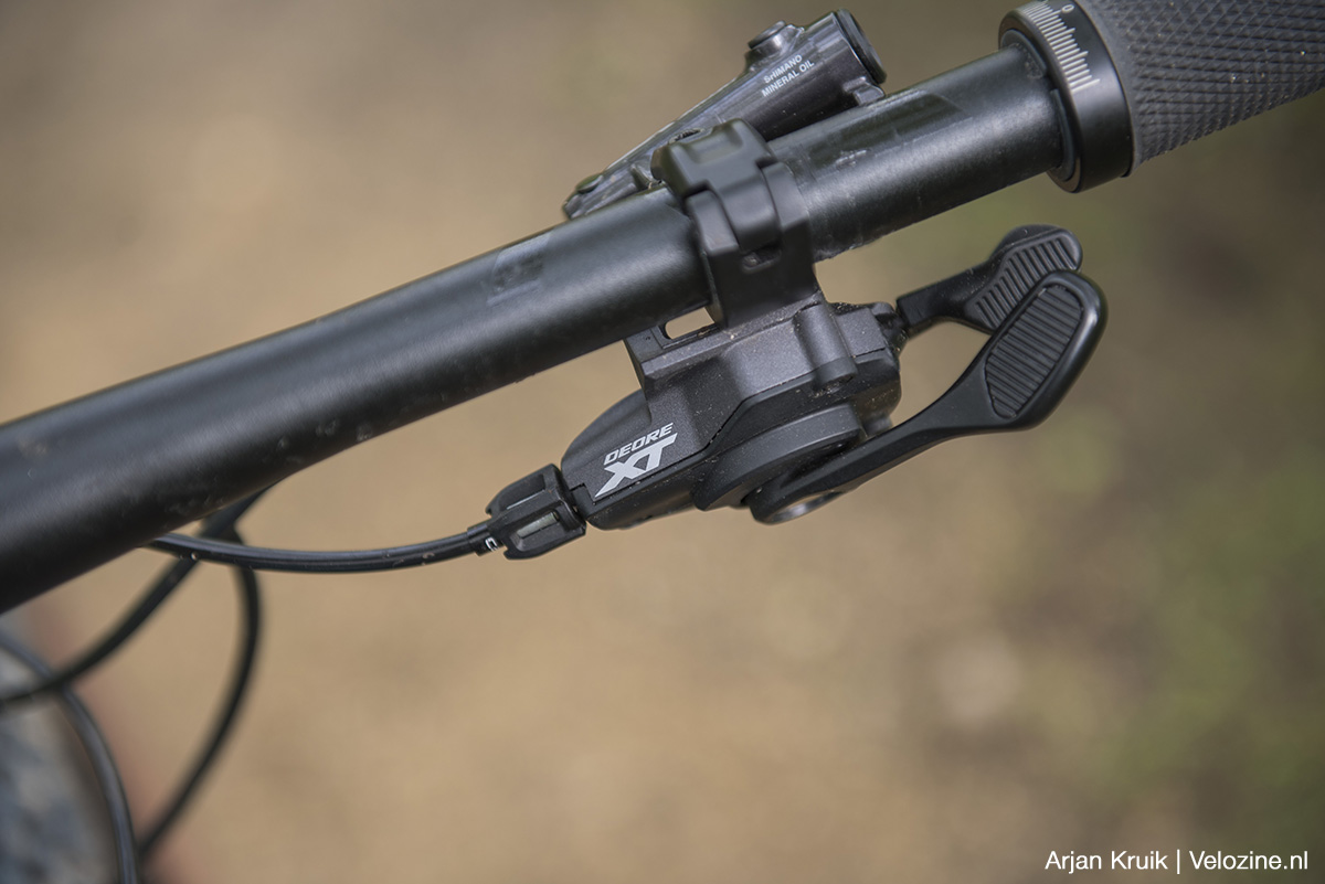 De prima veerelementen van Fox noemde ik hierboven al. Maar voor 3.499 euro levert Conway daarbovenop een nagenoeg complete Shimano XT-groep. Alleen de cassette en ketting zijn afkomstig uit de iets goedkopere SLX-groep. Maar dat levert functioneel gezien geen enkel nadeel op, terwijl Conway in tegenstelling tot sommige andere merken juist niet bezuinigd op de punten die er écht toe doen. Zo zit op het stuur een XT-shifter en zijn op de naven XT Ice Tech Freeza-remschijven gestoken. Waarom dat van belang is? Met de XT-shifter hebt je de mogelijkheid vier verzetten in één keer op te schakelen en twee in één keer omlaag. En de Freeza-remschijven zijn ondanks hun lage gewicht erg goed in het afvoeren van overtollige warmte.
