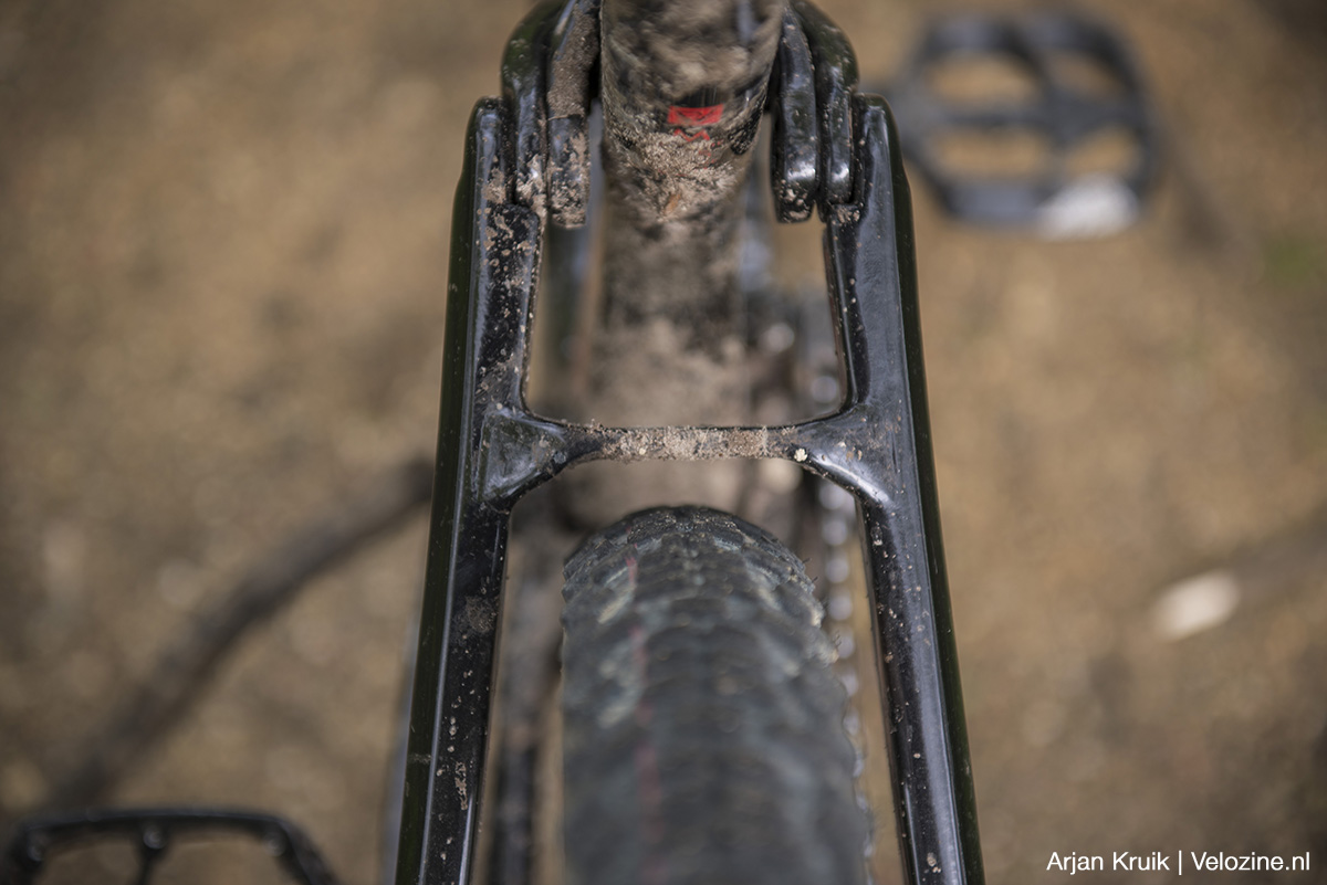 Van de achtervering naar de voorvork. Of meer precies: naar de 120 millimeter veerweg van die vork. Op m’n vaste Brabantse routes zie ik daarin geen toegevoegde waarde. Eerder andersom. Omdat die twee centimeter extra veerweg de fiets aan de voorkant iets hoger maakt, wordt de zitbuishoek nog flauwer dan deze toch al is. Terwijl ik op de Col du Kragge, vanwege de steile beklimmingen daar, eerder behoefte heb aan een steilere zitbuishoek dan aan meer veerweg. Want de afdalingen op de Col du Kragge zijn weliswaar bochtig, maar verder technisch niet ingewikkeld. En dus volstaat hier ‘gewoon’ 100 millimeter.