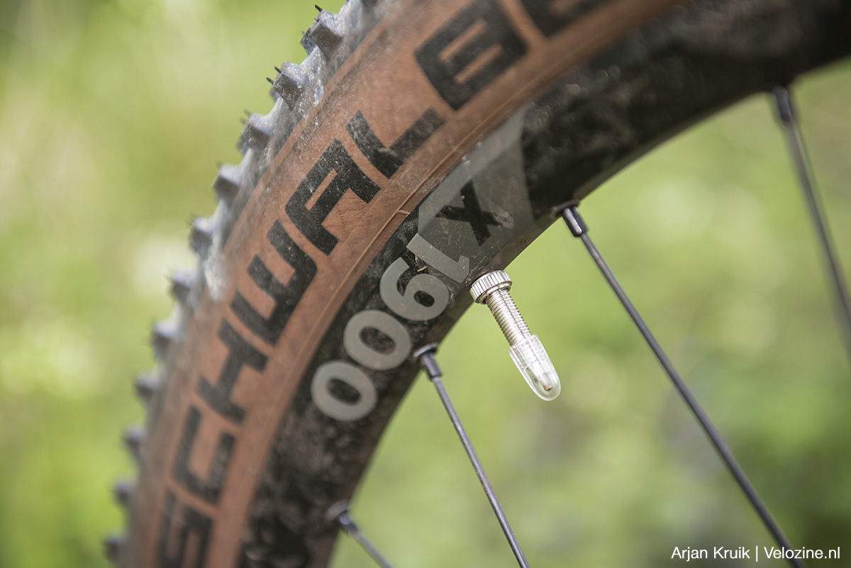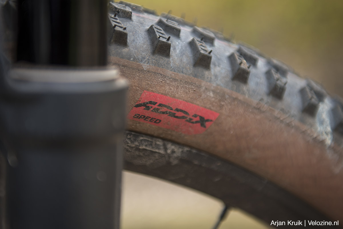 Okay, met een binnenbreedte van 25 millimeter zijn ze relatief smal, waardoor de 2.35 inch brede banden minder mooi vallen dan zou kunnen. Dus áls je de Conway RLC FS 6.9 wilt upgraden, dan zou ik zeggen: begin met de wielen. De rubbers van dienst zijn de Racing Ray en Racing Ralph, in dit geval met het lichte Super Race-karkas en de snelle Addix Speed-rubbersamenstelling. Dat alles maakt dit klassieke Schwalbe-koppel bij uitstek geschikt voor de doorsnee Nederlandse mountainbikeroute, waar een verdwaalde wortel het heftigste obstakel is dat je kan tegenkomen.