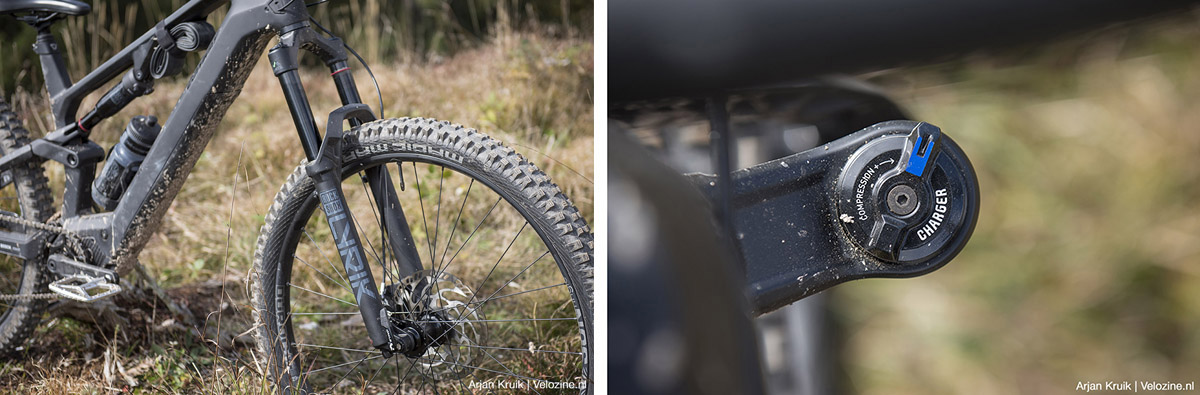 Het gaat te ver om de gebruikte veerelementen basic te noemen, want zijn allebei functioneel en effectief. Maar wie graag los gaat op instelmogelijkheden is bij de Rockshox Deluxe Select-demper en de Rockshox Lyrik Select-voorvork aan het verkeerde adres. De demper heeft uitsluitend een instelbare rebound, de vork heeft iets meer instelmogelijkheden; naast de demping van de uitgaande slag ook de low-speed compressiedemping. Voor de rest moet je het doen met de fabrieksafstelling. Gelukkig is die ronduit goed, zodat ik het gebrek aan instelmogelijkheden in de praktijk niet echt als een gemis ervaar.