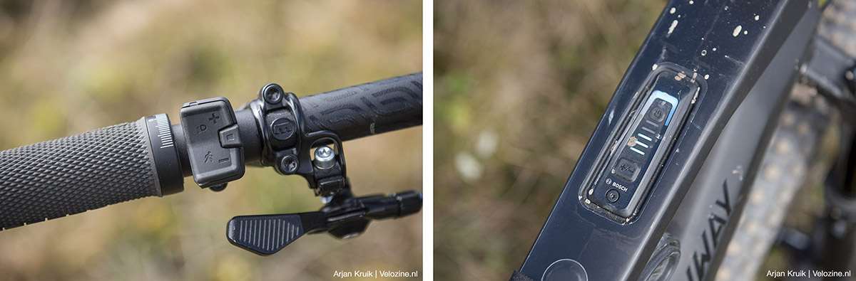 Over Bosch SX versus CX gesproken: de bediening van de SX-motor wijkt niet af van die van CX-modellen: de display is in de bovenbuis geïntegreerd, de knoppen voor de bediening zitten naast het linker handvat. Ook de ondersteuningsstanden zijn hetzelfde: eco, tour+, emtb en turbo. Een ander gedeeld kenmerk is de extended boost-functie. Hierbij blijft de motor nog even ondersteuning bieden nadát je gestopt bent met trappen. Dat kan in technische klimmetjes van pas komen. Je valt dan niet stil als je even terugtrapt om de pedalen juist te positioneren voor het overwinnen van een rots of wortel.