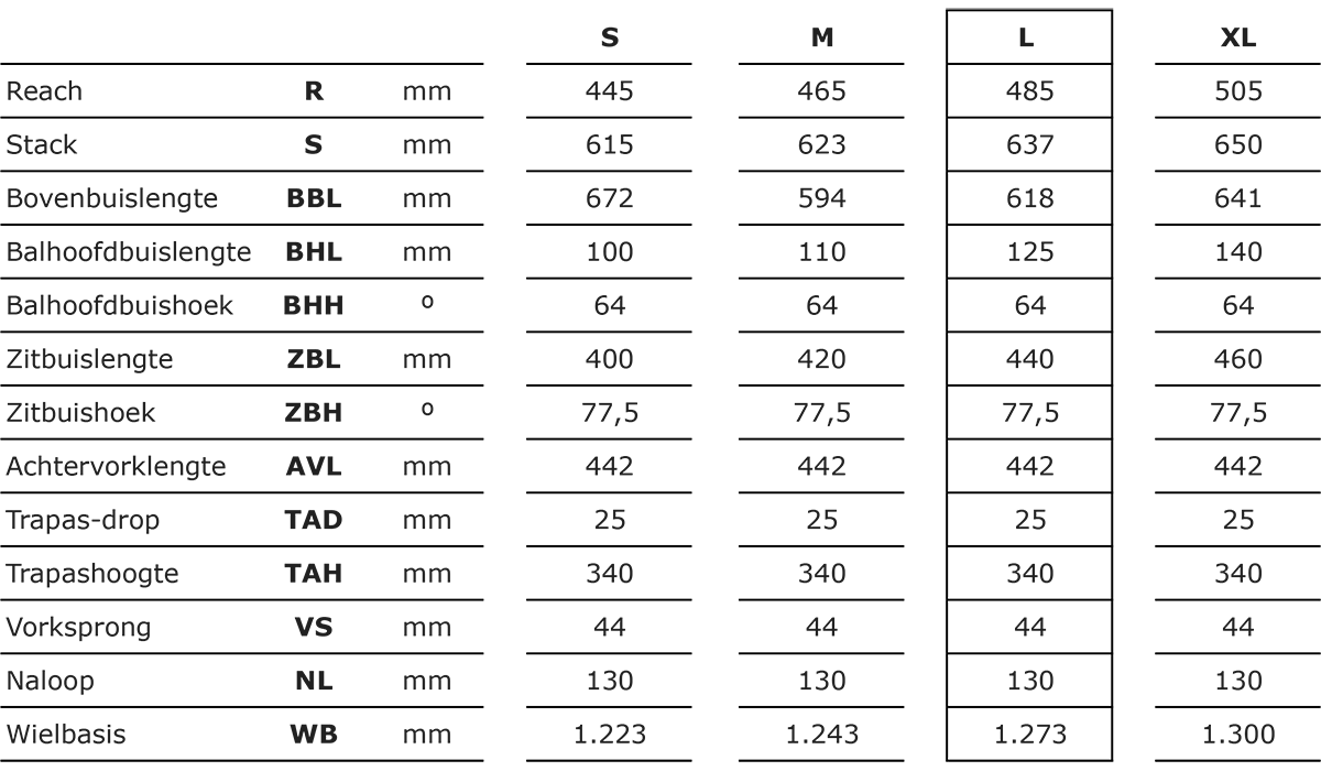 De trapas staat 25 millimeter lager dan de denkbeeldige horizontale lijn door de vooras. Ook op een ander punt, de lengte van de zitbuis, is Ryvon ST helemaal van nu. In framemaat L meet die 440 millimeter, zodat er ruimte is voor droppers met een groot verstelbereik. In dit geval zelfs 200 millimeter! De wielbasis, tot slot, meet 1.273 millimeter.