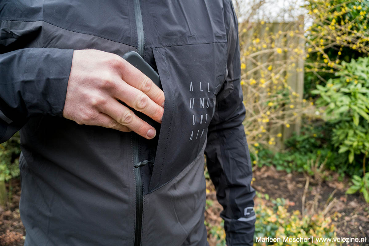 Waar sommige regenjasjes erg dun en compact zijn om ze gemakkelijk mee te kunnen nemen, zijn dat eerder jasjes voor de noodgevallen. Het Cube All Mountain Storm Jacket is een ‘volledige’ en volwaardige regenjas, inclusief capuchon voor die stortbuien. Die capuchon had van mij wél afneembaar mogen zijn. Ik vind een capuchon niet altijd even fijn, en bij motregen zet ik hem dan ook niet snel op. En ook wanneer ik de jas aan doe als windjack, bungelt de capuchon als een remparachute wat achter me aan en dat vind ik niet echt prettig.