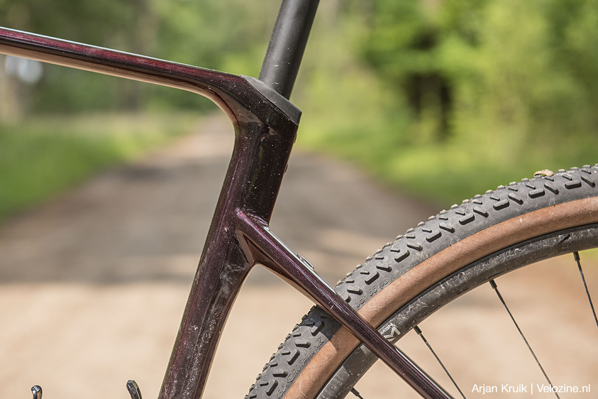 Frame en vork bieden plaats aan banden tot 50 millimeter, maar af fabriek hangt er 45 millimeter breed rubber in de Nuroad C:62 SLX.
