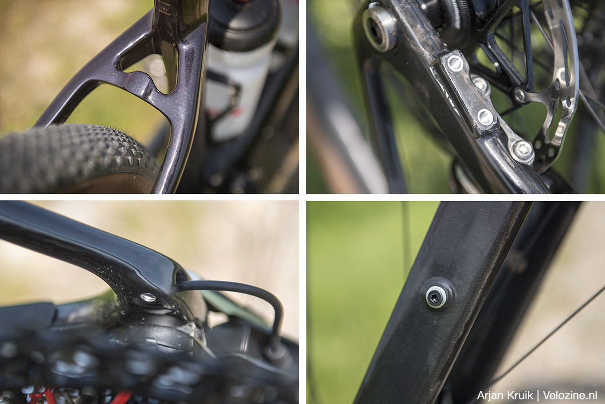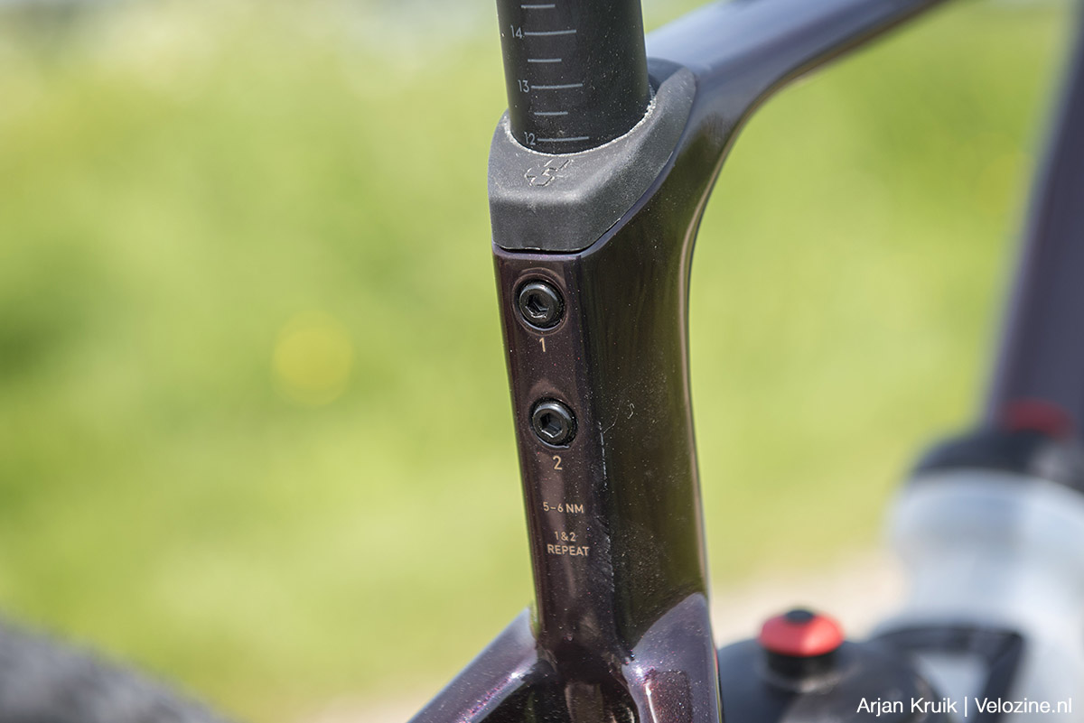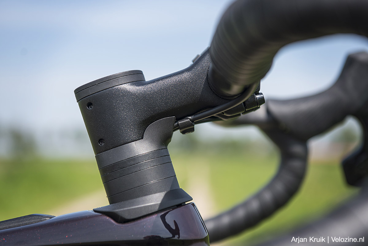 Alleen het stuur staat naar mijn smaak wat aan de hoge kant. Ja, de hoge positie zoals je die op de foto’s ziet biedt veel controle in lastige offroad-secties. Maar om op lange rechte stukken onderin de beugels voor de wind weg te kunnen duiken, zou ik het stuur zelf toch wat lager zetten. Ondanks de geïntegreerde kabels is dat zo gebeurd. Het kán dus wel, kabels integreren zonder het gebruiksgemak uit het oog te verliezen!