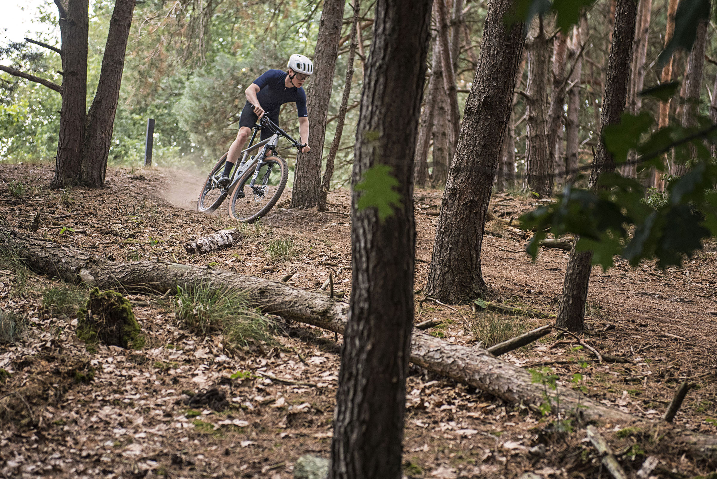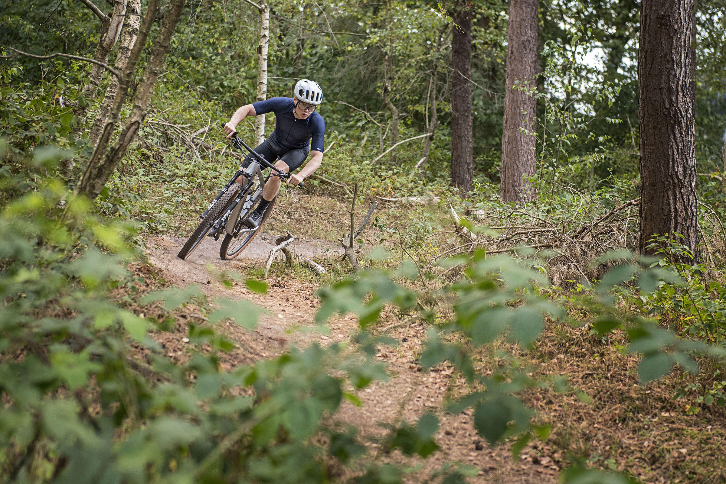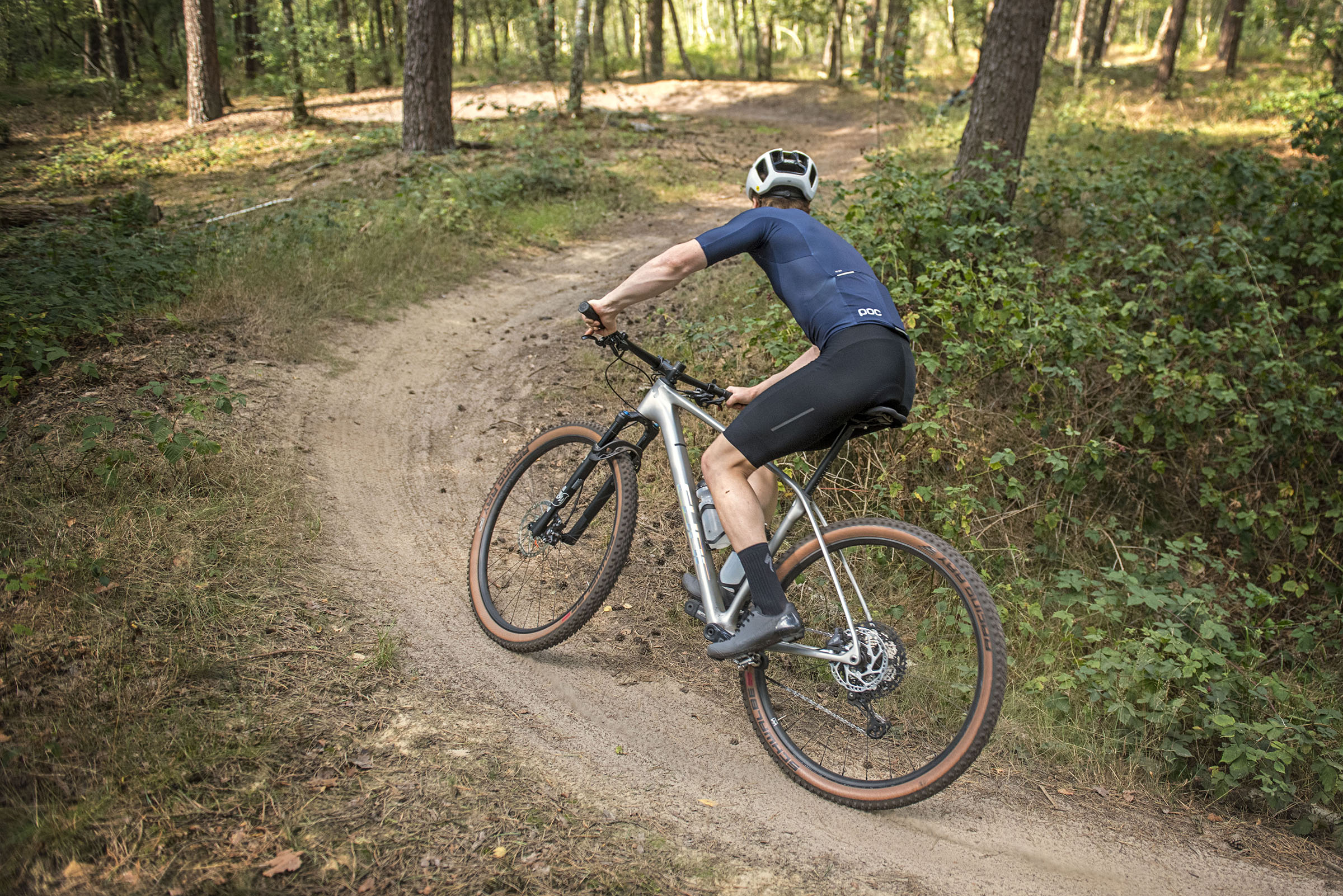 Aan de andere kant van het spoor, op de singletrack door de Borgvlietse Duinen, voelt de Reaction C:62 zich opnieuw in zijn element: wendbaar, dynamisch en bovenal heel erg fun. Toch komen, met twee maal 250 hoogtemeters op de Kragge in de benen, ook de mindere kanten van deze carbon hardtail aan het licht. Het comfort laat te wensen over; door de zeer korte achterbrug worden schokken directer en harder doorgegeven. De lange, slanke zadelpen neemt de scherpste randjes weliswaar weg, maar er is nog genoeg dat het zitvlak wel weet te bereiken. Daarbij komt dat ook de relatief smalle 2.25-inch banden weinig bijdragen aan demping of comfort.