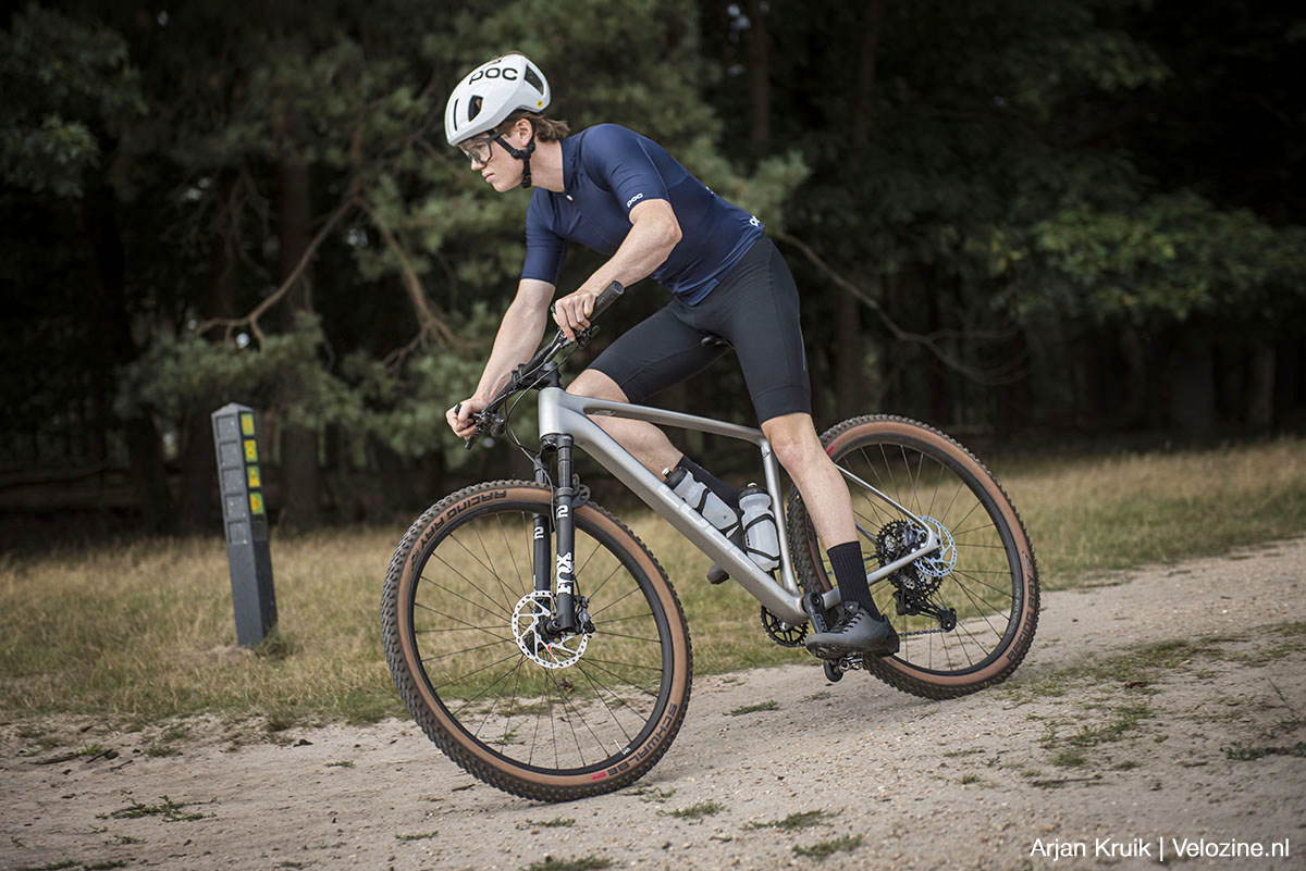 Kritiek? Niet veel. De garantie is met drie jaar nogal karig, zeker omdat sommige concurrenten levenslang garantie op het frame bieden. Maar op wat kleine puntjes na – de smalle banden, de flatmount remklauwmontage – kun je verder alle vakjes afvinken. Het enige punt waar ik echt m’n wenkbrauwen over optrek is het ontbreken van een degelijke beschermer op de liggende achtervork, waardoor het frame op wortelpaden een tweede carrière als klankkast lijkt na te streven. Jammer, want een stille bike is een snelle bike.