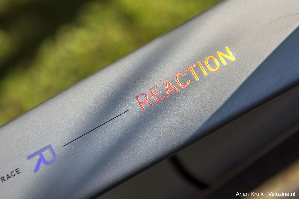 Waar de geometrie van de competitieve Phenix C:68X lang en laag is, daar zijn de maten van de Reaction C:62 veel meer toegespitst op de recreatieve rijder. Natuurlijk, die Reaction C:62 is zeker geen omafiets, verre van. Maar de diepe en gestrekte zit die van de Phenix een wat vermoeiende machine kan maken, heeft bij de Reaction een comfortbehandeling ondergaan. Concreet betekent dit dat de Reaction minder lang en laag is. Zo bedragen de reach en de stack bij de Phenix 457 en 622 millimeter. Bij de Reaction zijn die waardes respectievelijk 439 en 630 millimeter. Dat scheelt nogal. Ook in de wielbasis komt dat verschil en lengte duidelijk terug: 1.145 millimeter voor de Phenix tegen 1.130 millimeter voor de Reaction.