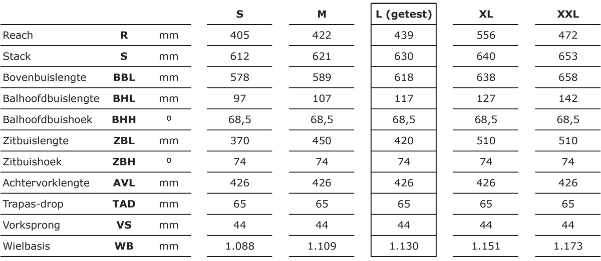 De nieuwe Reaction C:62-serie van Cube omvat vier modellen, die elk in twee kleuren komen. Topmodel is de Reaction C:62 SLX met Sram GX Eagle AXS Transmission, die met 2.999 euro nét onder de drieduizend euro blijft. Daaronder komt de Reaction C:62 Race van 2.499 euro waarmee wij gereden hebben. De Reaction C:62 Pro komt op 1.999 euro, hekkensluiter is de Reaction C:62 One, waarvoor je slechts 1.499 euro hoeft neer te tellen. Daarvoor krijg je weliswaar de nogal eenvoudige SX-groep van Sram, maar wel exact hetzelfde hoogwaardige carbon frame als bij het topmodel. Cube brengt de Reaction C:62 in vijf verschillende maten, van S tot XXL.