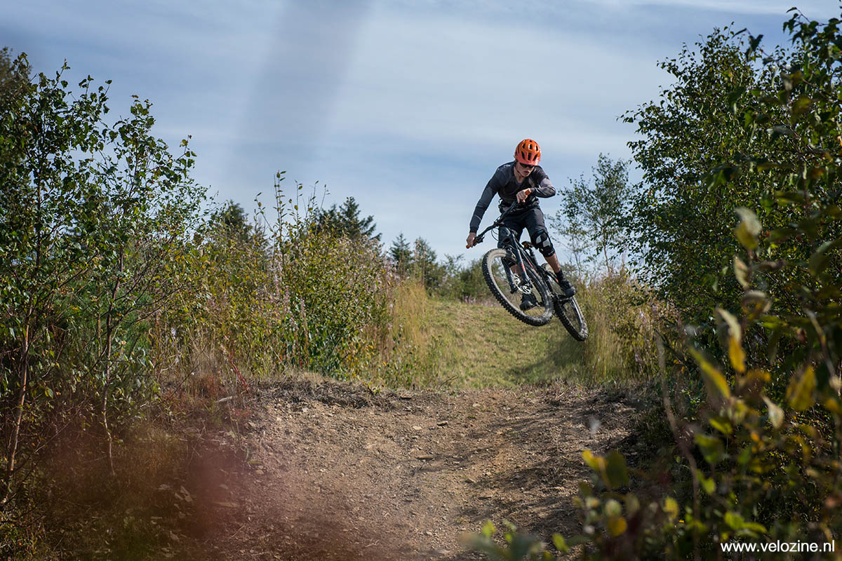 Okay, als het echt steil en stenig wordt is een echte endurobike sneller. En biedt daarbij dan meer vertrouwen en zekerheid. Bij de Stereo HPC 120 moeten de wijsvingers aanmerkelijk eerder aan de rem. Maar ik heb daar eigenlijk niet zo’n probleem mee. In tegenstelling tot veel dikkere bakken verleidt deze speelse trailbike me voortdurend om de randjes van de trail op te zoeken. Om lekker te driften met het achterwiel. Of om het luchtruim te kiezen. De fiets heeft een heerlijke pop. En harde landingen worden behoorlijk goed geabsorbeerd.