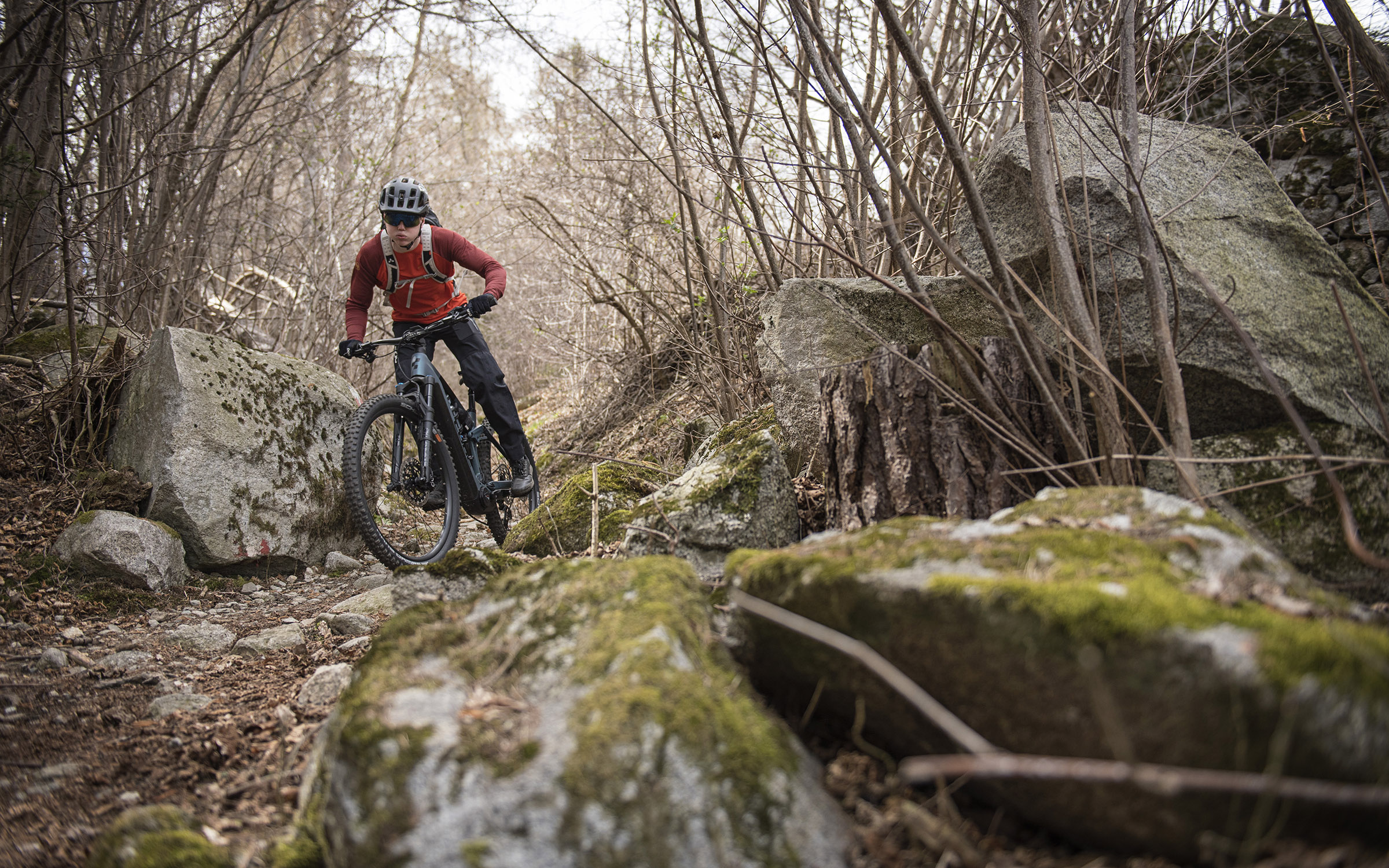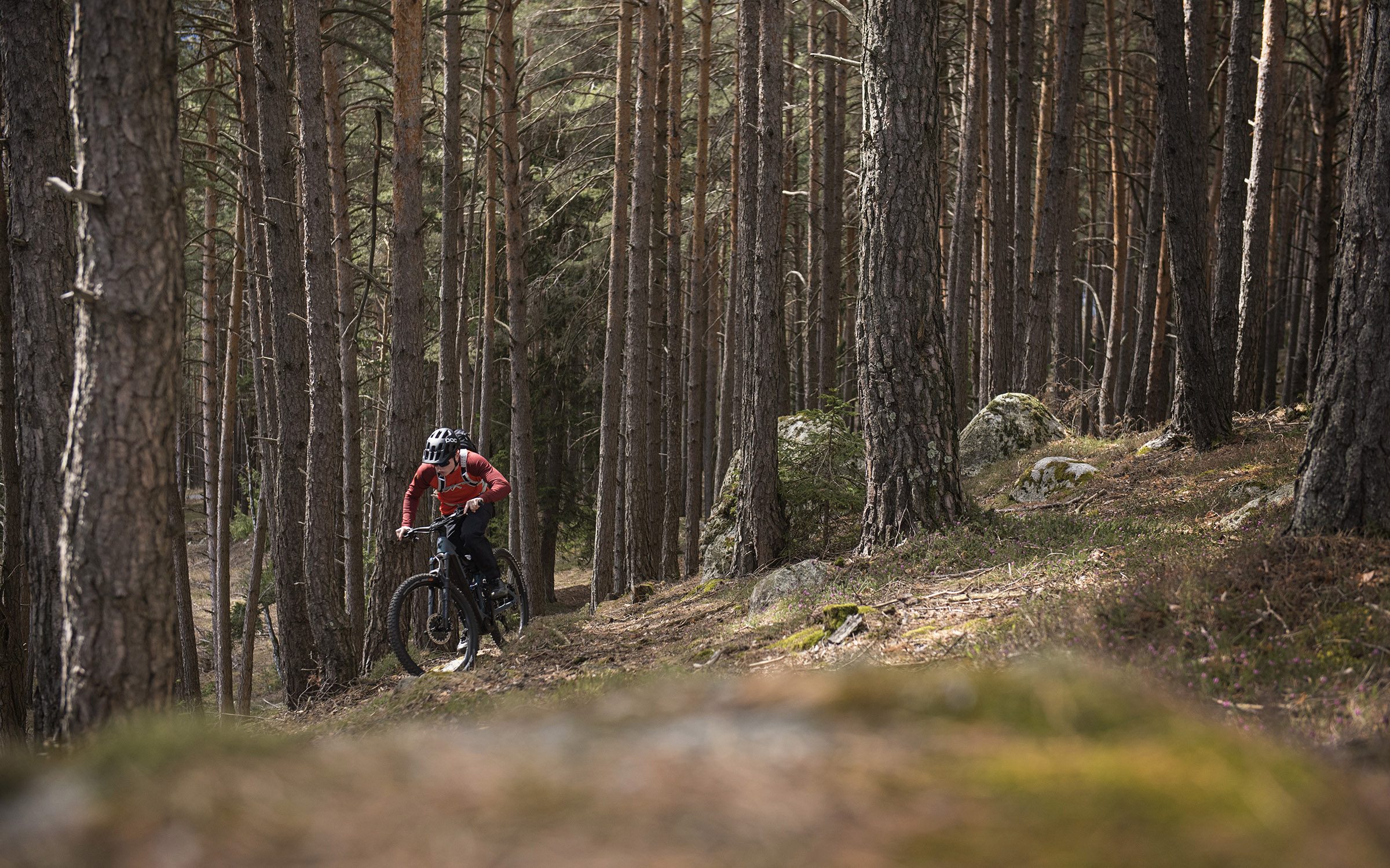 De uitvalsbasis voor deze test is het stadje Brixen in het Zuid-Tiroolse Eisacktal. Of Bressanone, want ze spreken er zowel Duits als Italiaans. De bergen rond Brixen worden gekenmerkt door een eindeloze hoeveelheid trails. Omdat het pas begin april is, zijn die vanwege de sneeuw nog niet allemaal begaanbaar. Geen probleem, want ook de lager gelegen mountainbikeroutes zijn uitdagend genoeg! Omdat we niet naar de toppen kunnen, rijder we vooral op-en-neer paden langs de flanken van de bergen. En die zijn de Stereo Hybrid 140 HPC ABS op het lijf geschreven. In de licht glooiende secties valt de ontspannen, relatief rechte zitpositie op. Zo houd je het lang vol, vooral ook omdat de vering erg comfortabel is en ook bij flink aanzetten niet verhard.